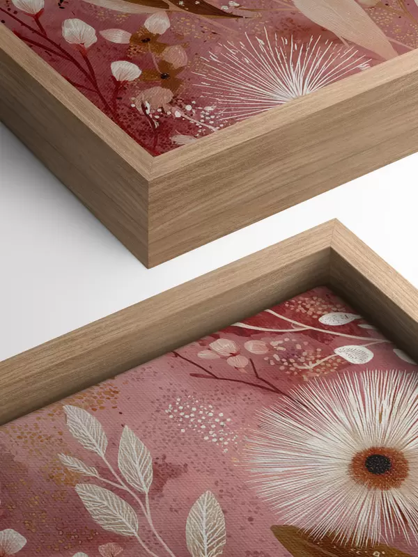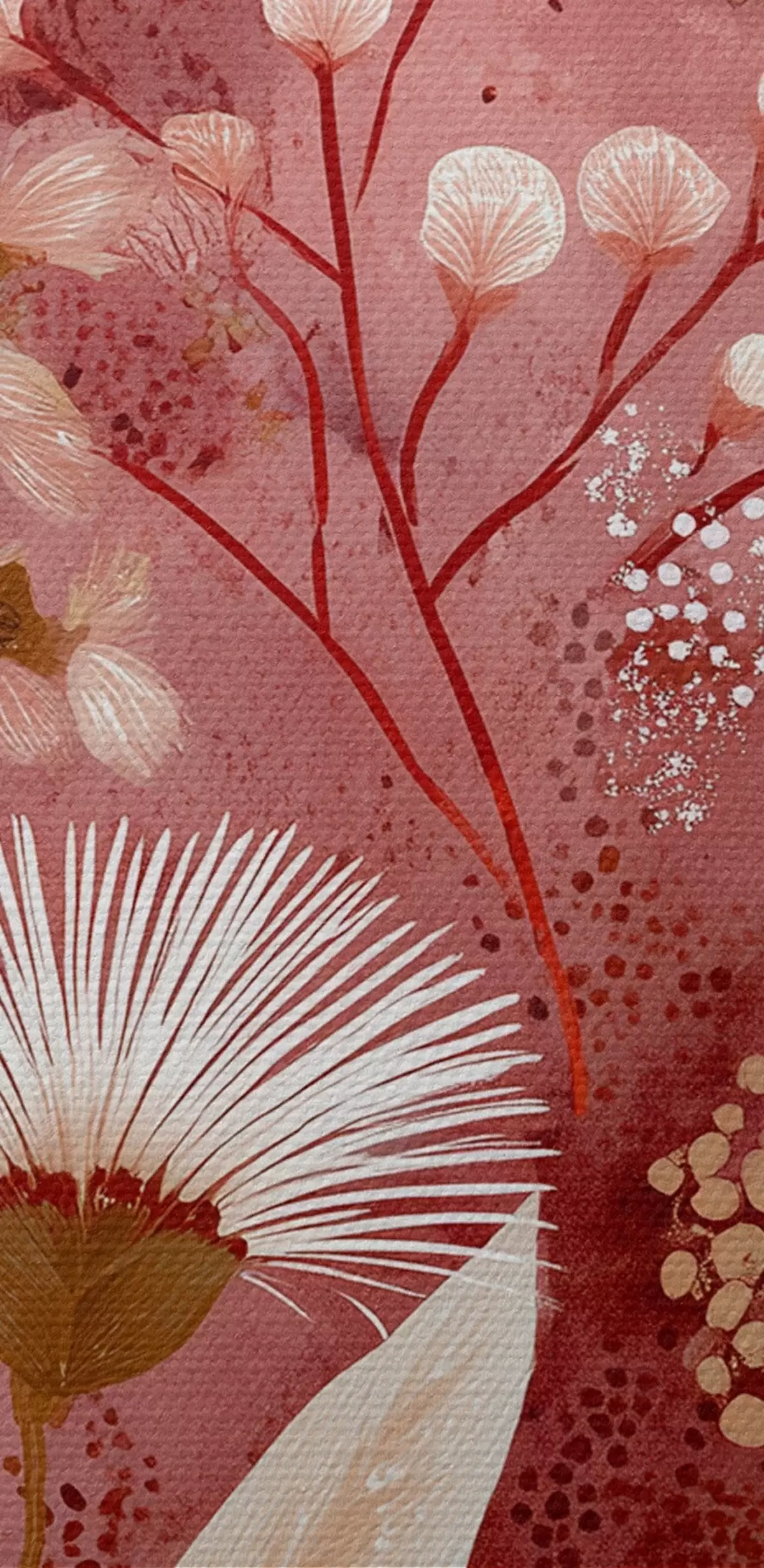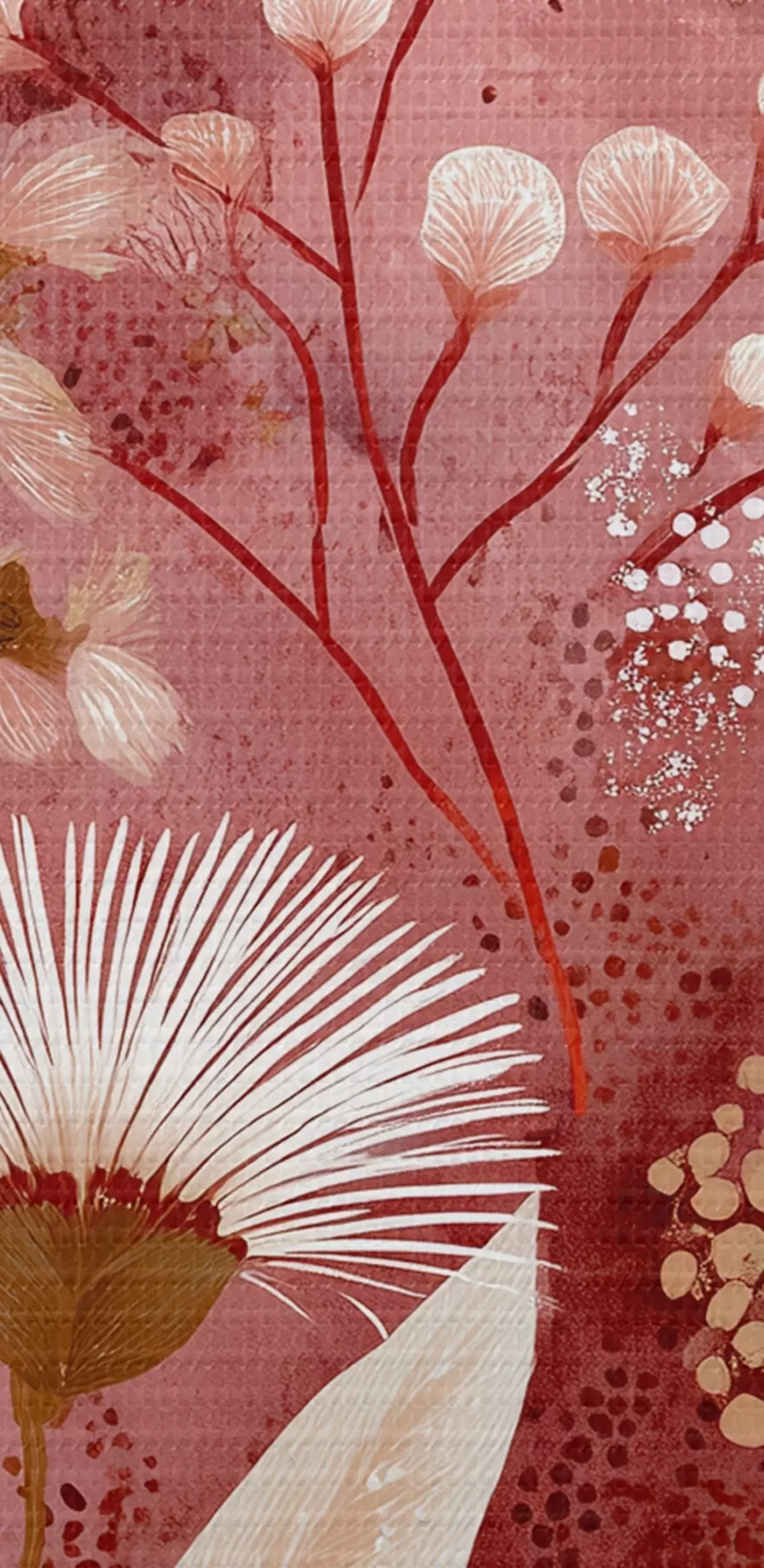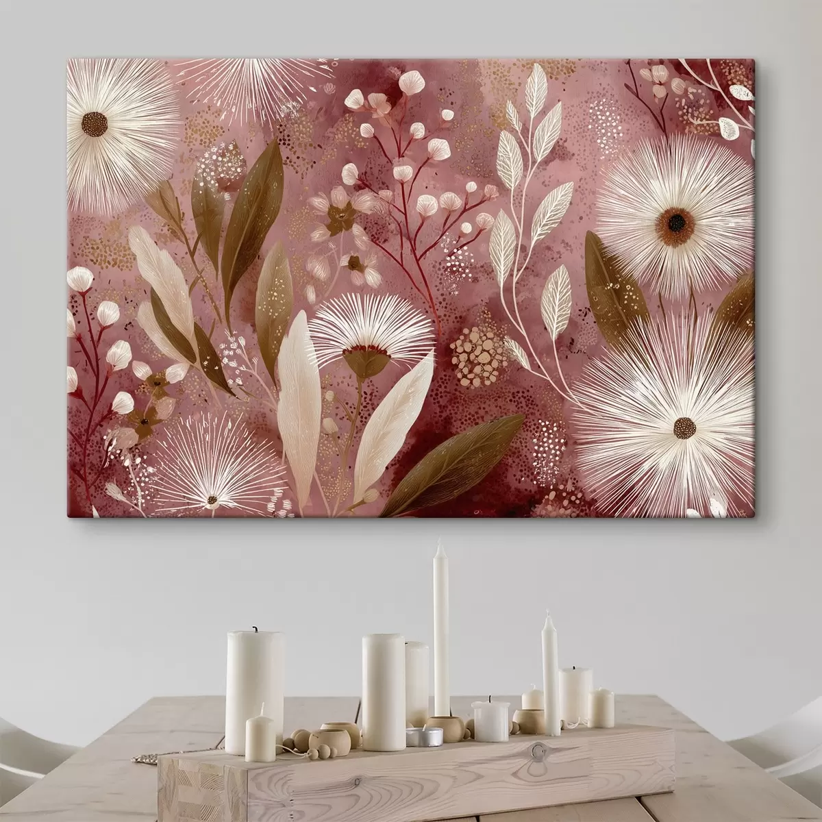 Paveikslas Boho stiliaus baltos gėlės raudoname fone, detalus piešinys Nr s44979