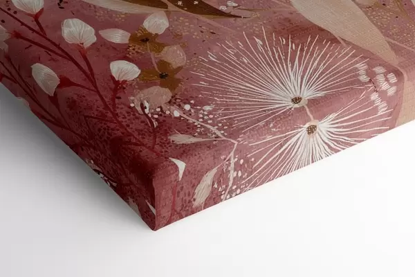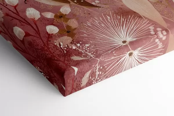 Paveikslas Boho stiliaus baltos gėlės raudoname fone, detalus piešinys Nr s44979