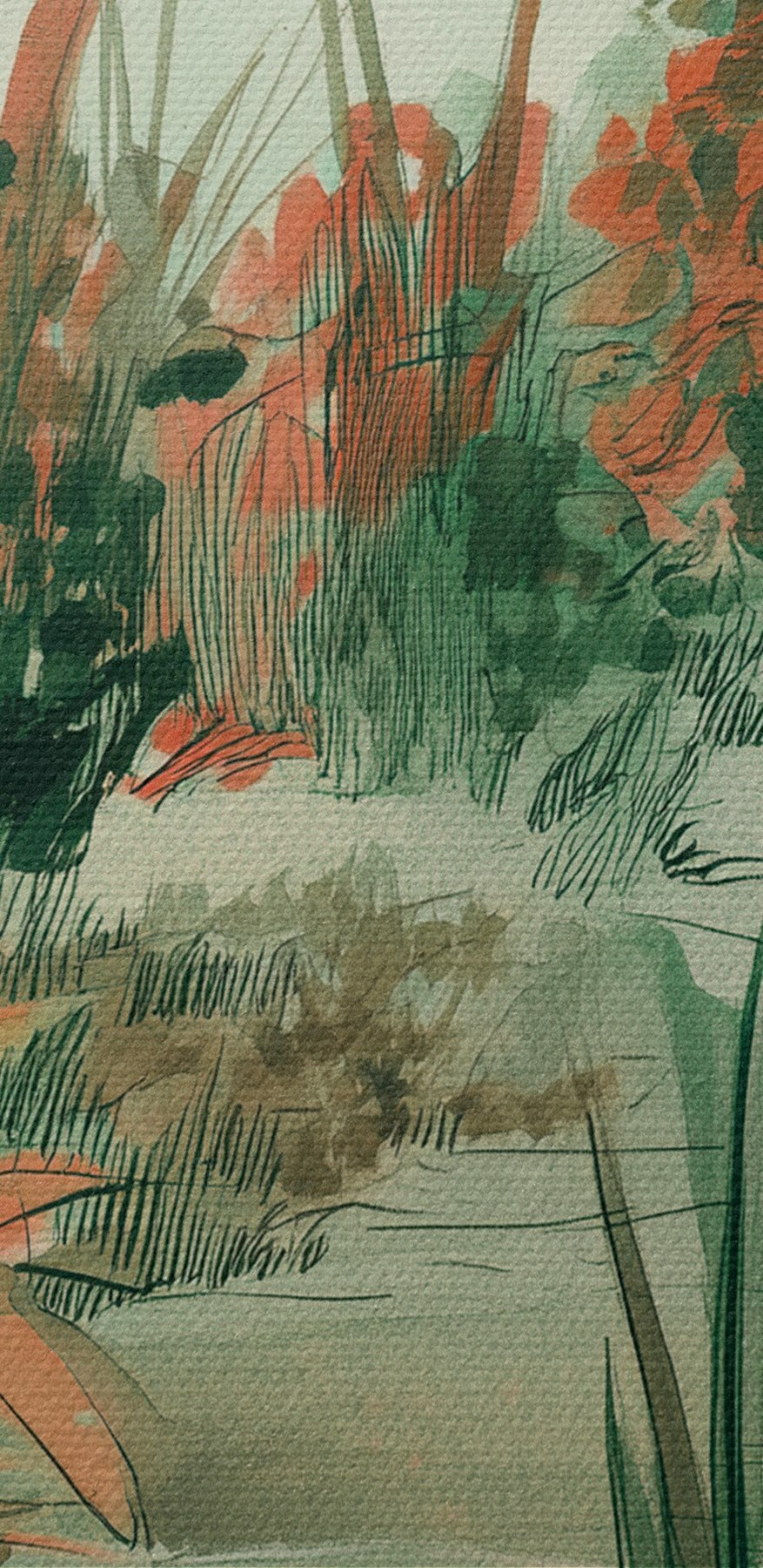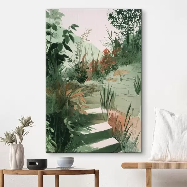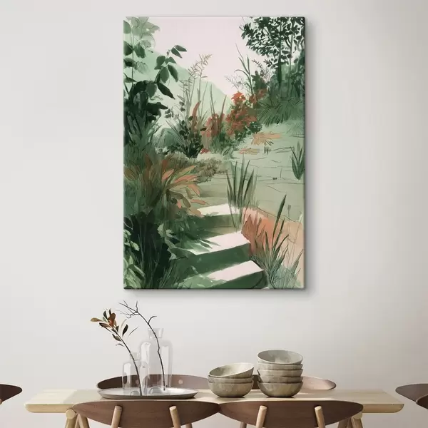 Paveikslas Rytietiškas sodas su krūmais ir medžiais, žalios spalvos Nr s44982