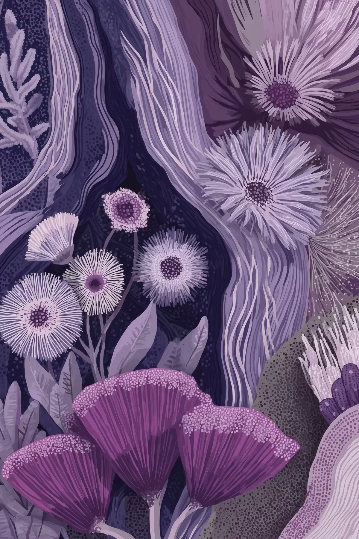 Paveikslas Violetinės spalvos gėlių dizainas, detalus piešinys Nr s44984