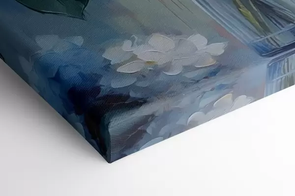 Paveikslas Mėlynų hortenzijų puokštė stiklinėje vazoje Nr s44998