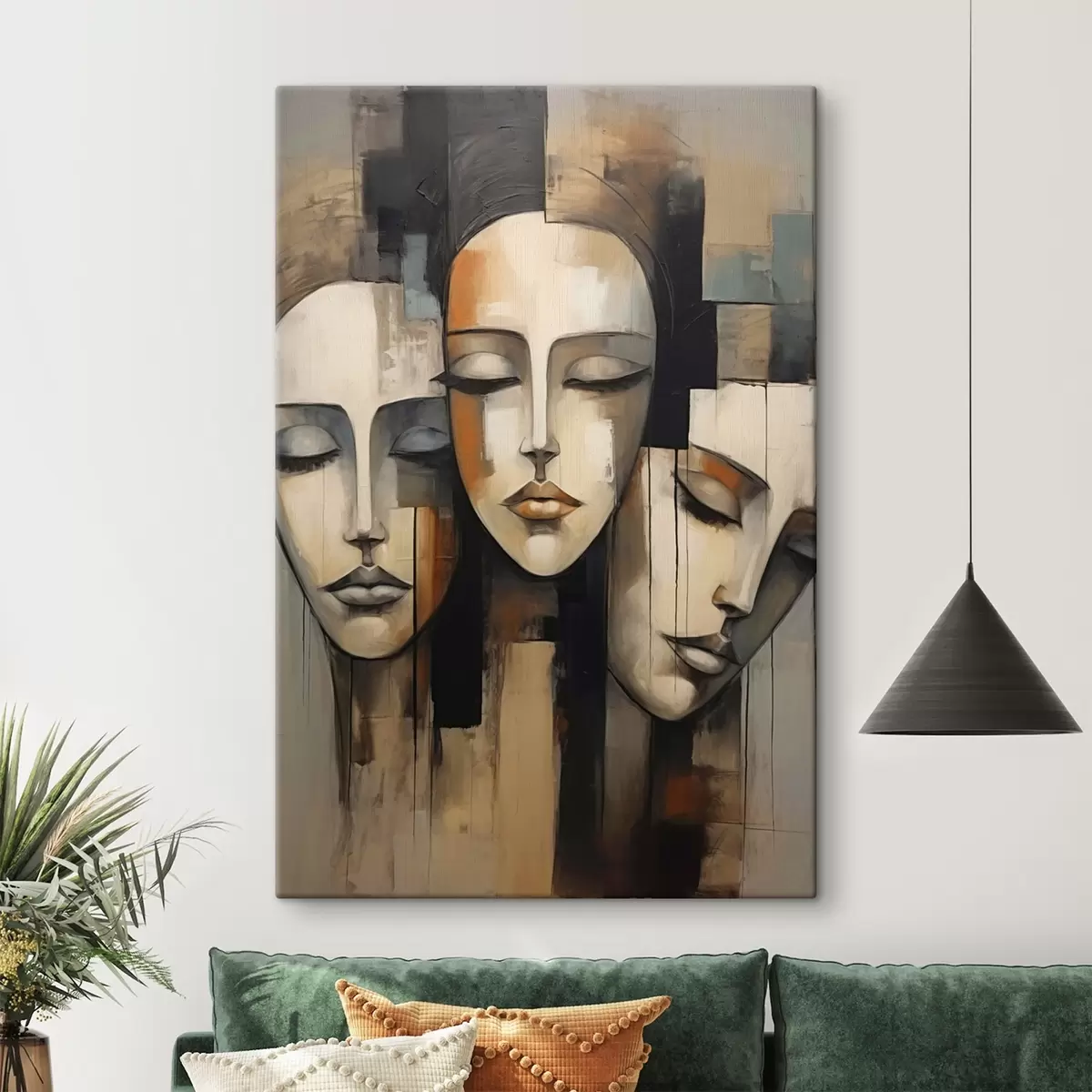 Paveikslas Trys moterų veidai užmerktomis akimis kubizmo stiliumi Nr s45008