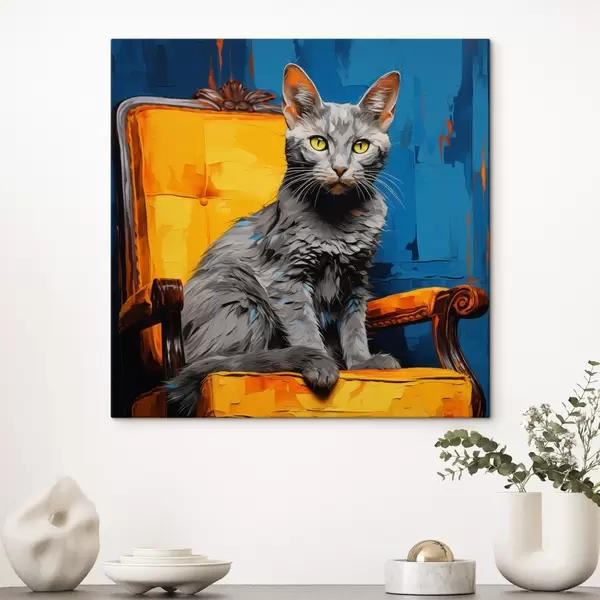 Paveikslas Meninis katės portretas mėlyname fone Nr s45030