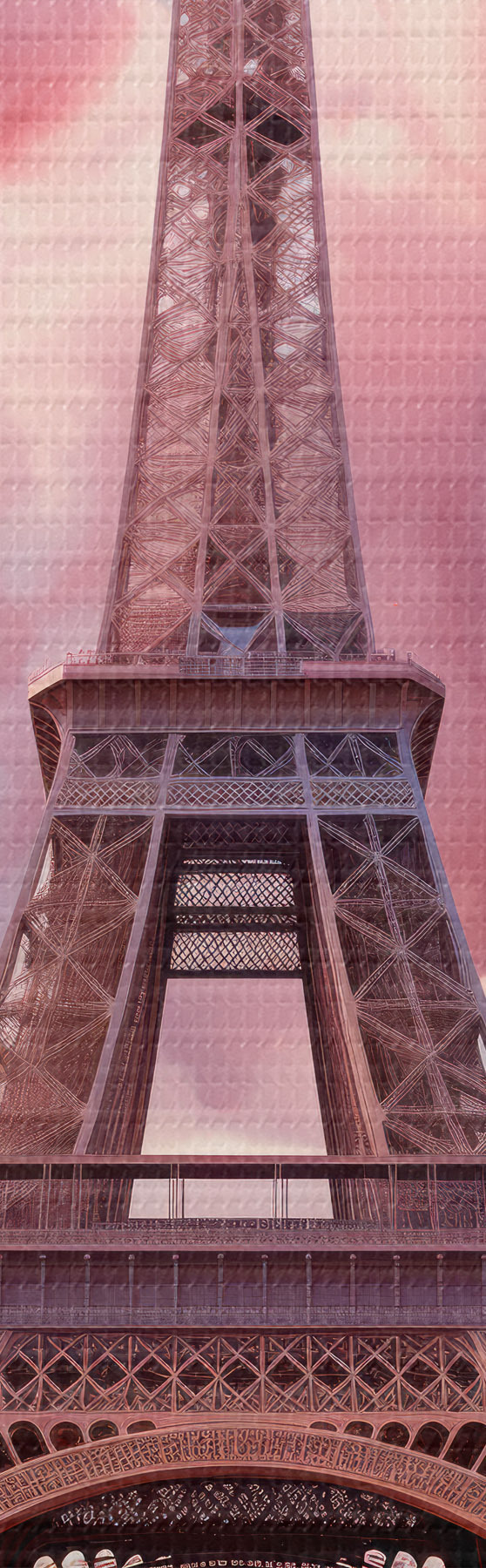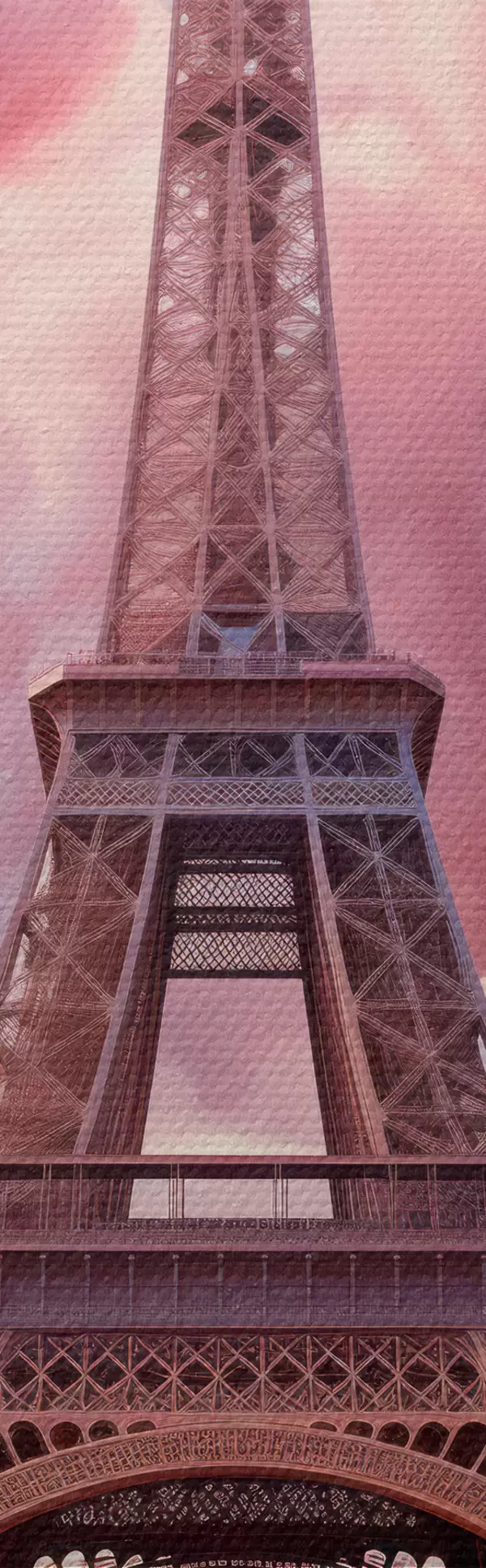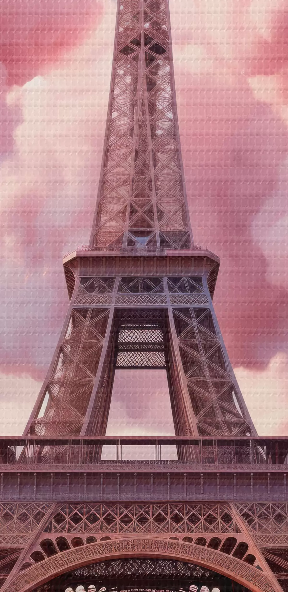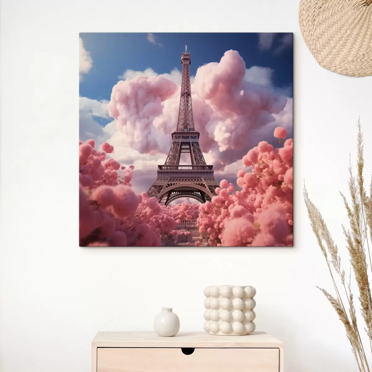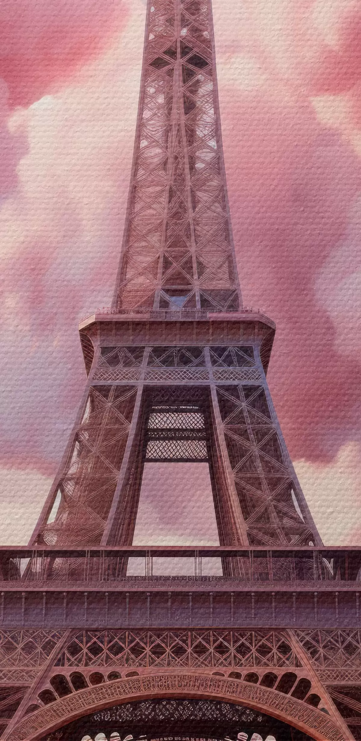Paveikslas Eifelio bokštas rausvuose fantastinio stiliaus debesyse Nr s45036