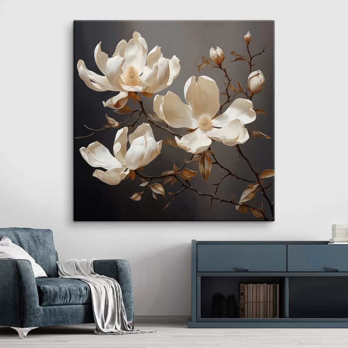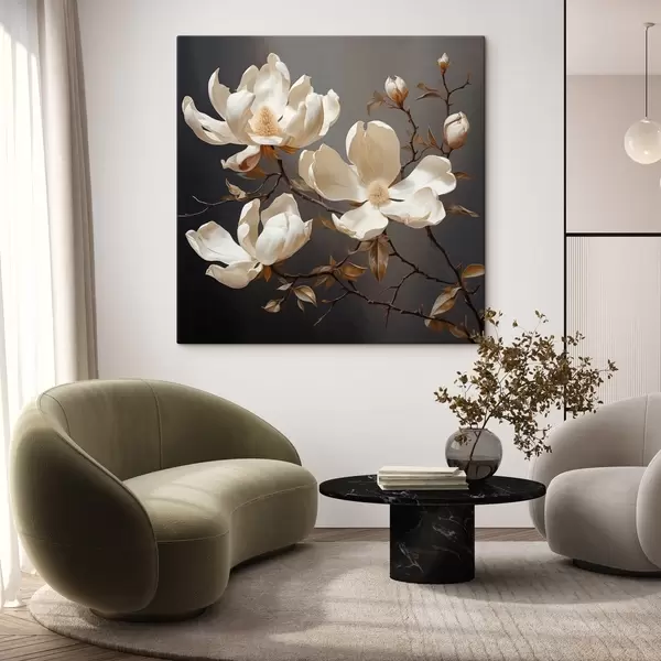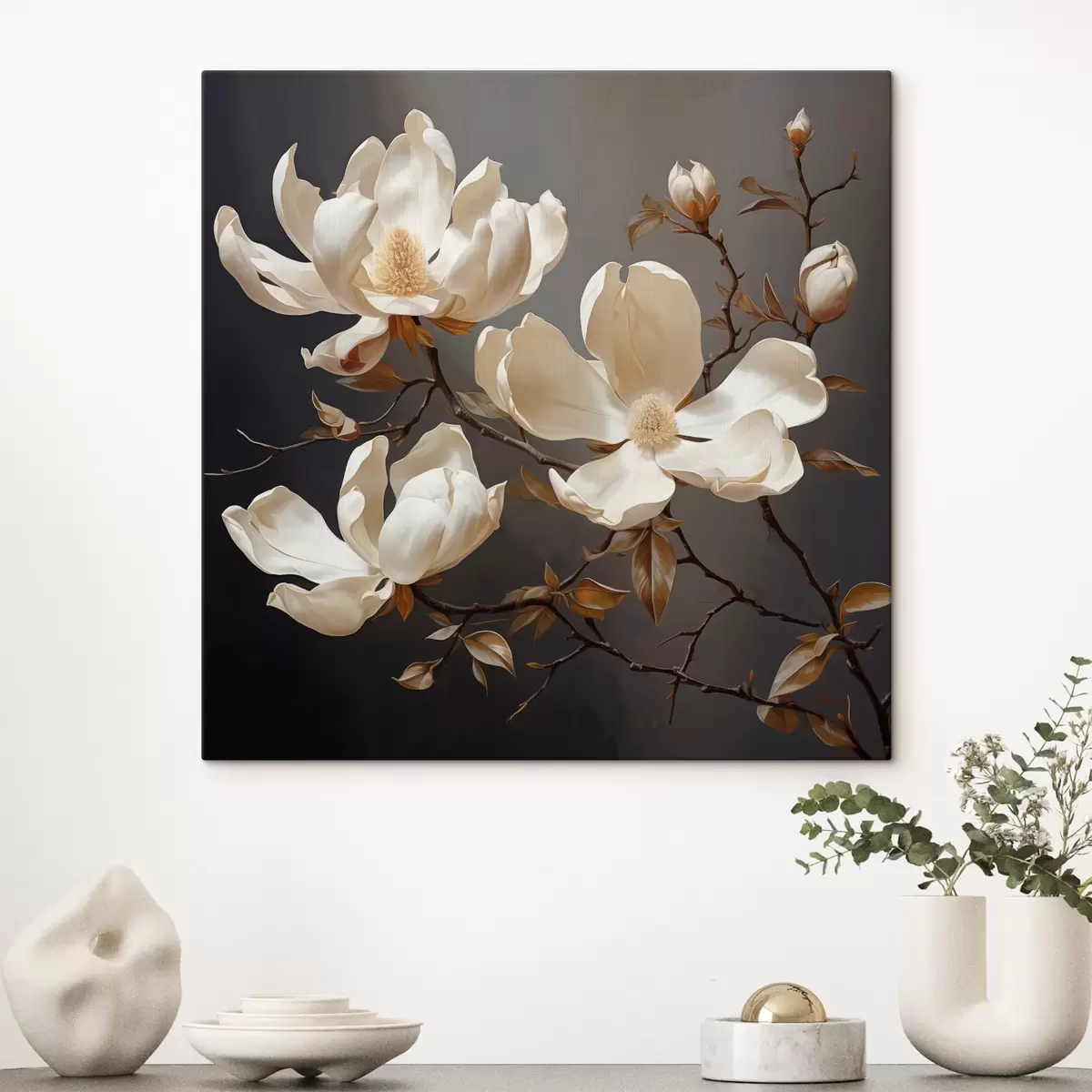Paveikslas Baltos magnolijos tamsiame fone tapybiniu stiliumi Nr s45038
