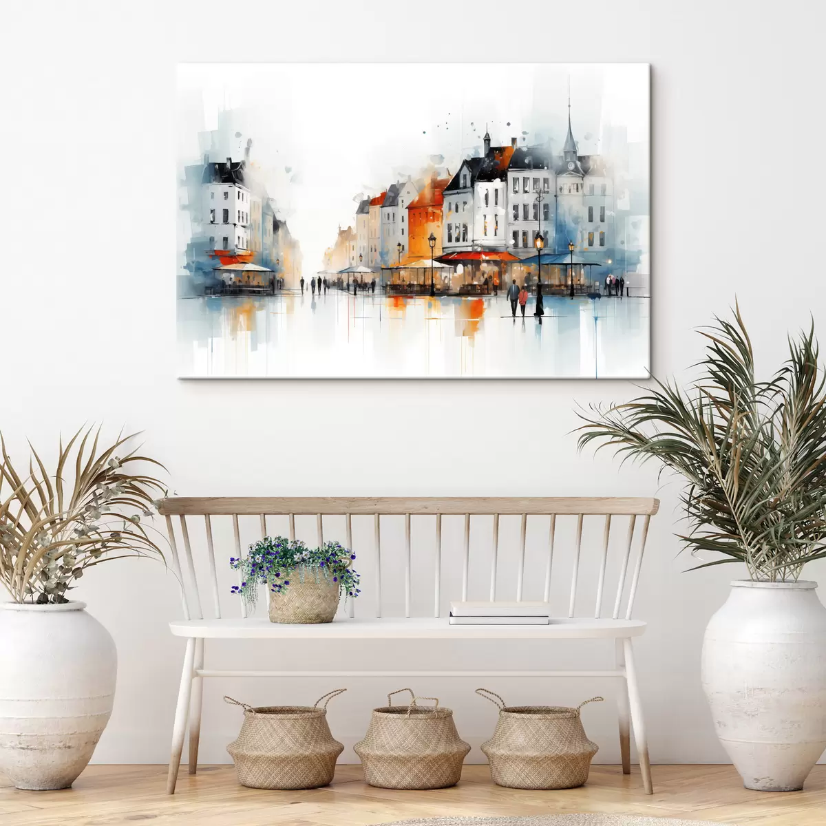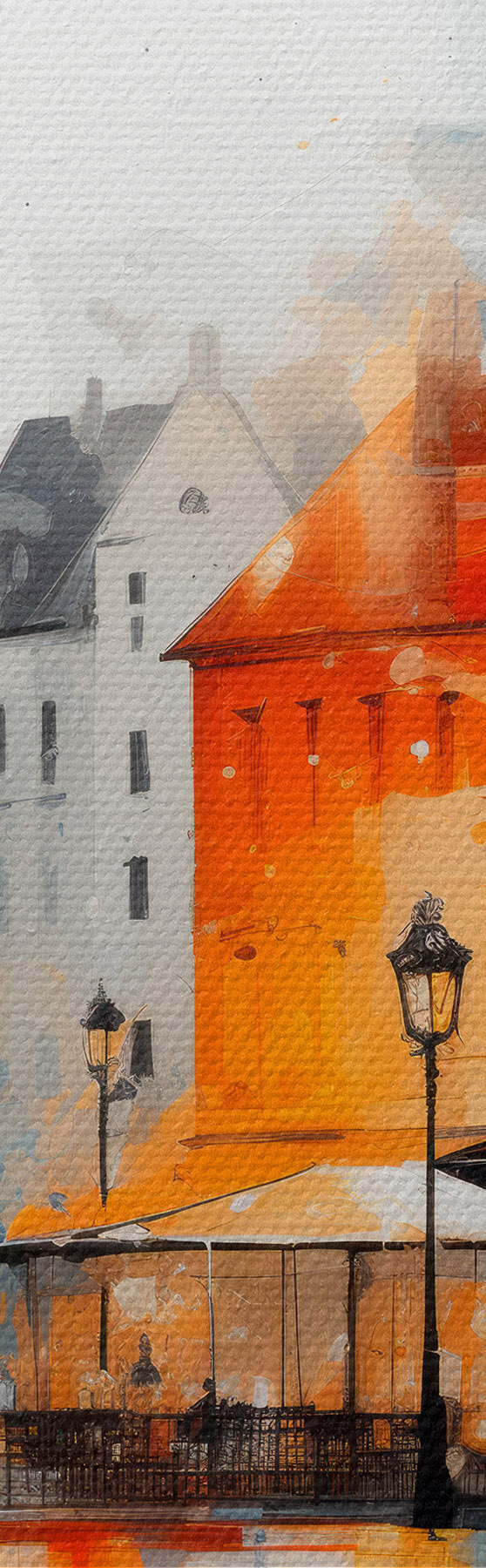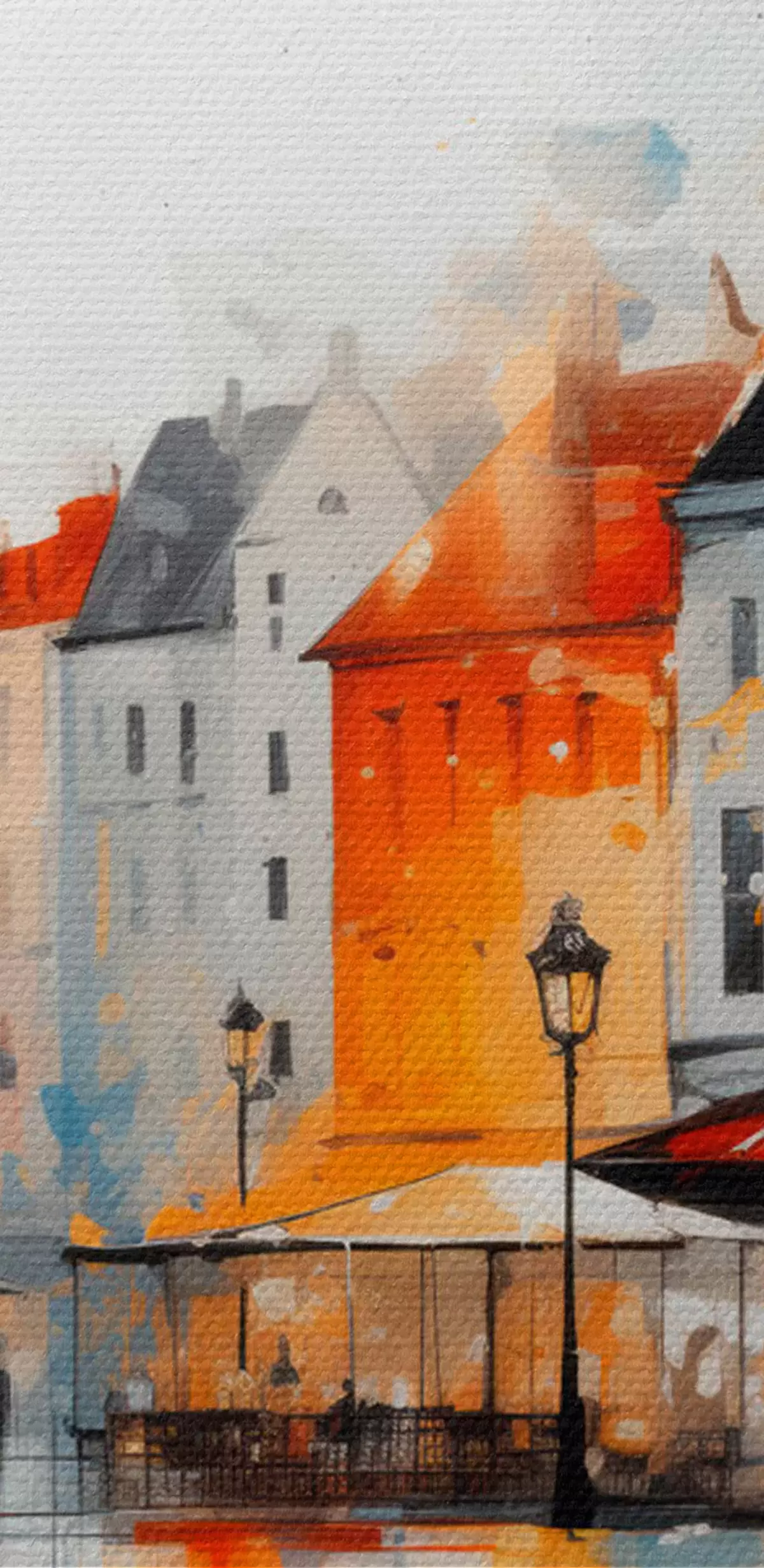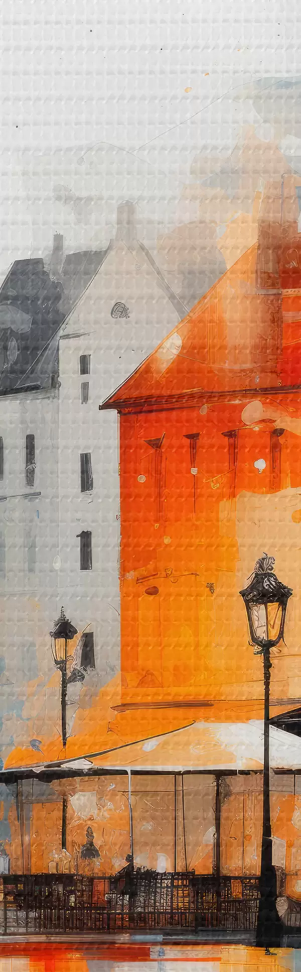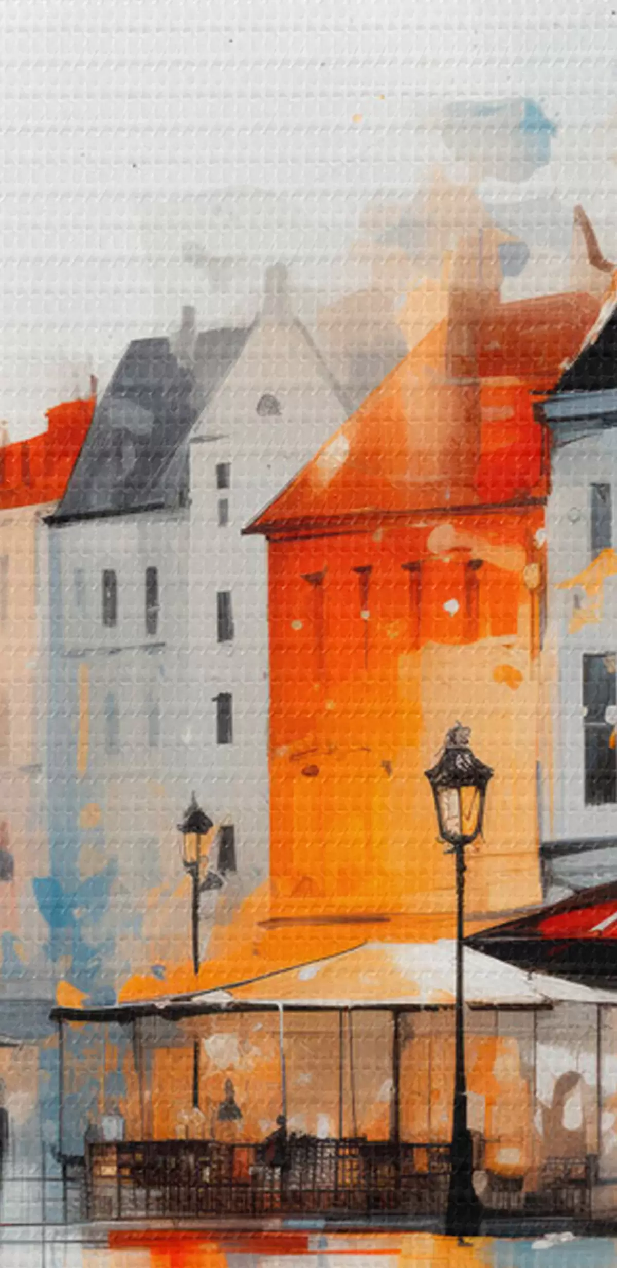 Paveikslas Meninio stiliaus gatvės scena su pastatais ir žmonėmis Nr s45050