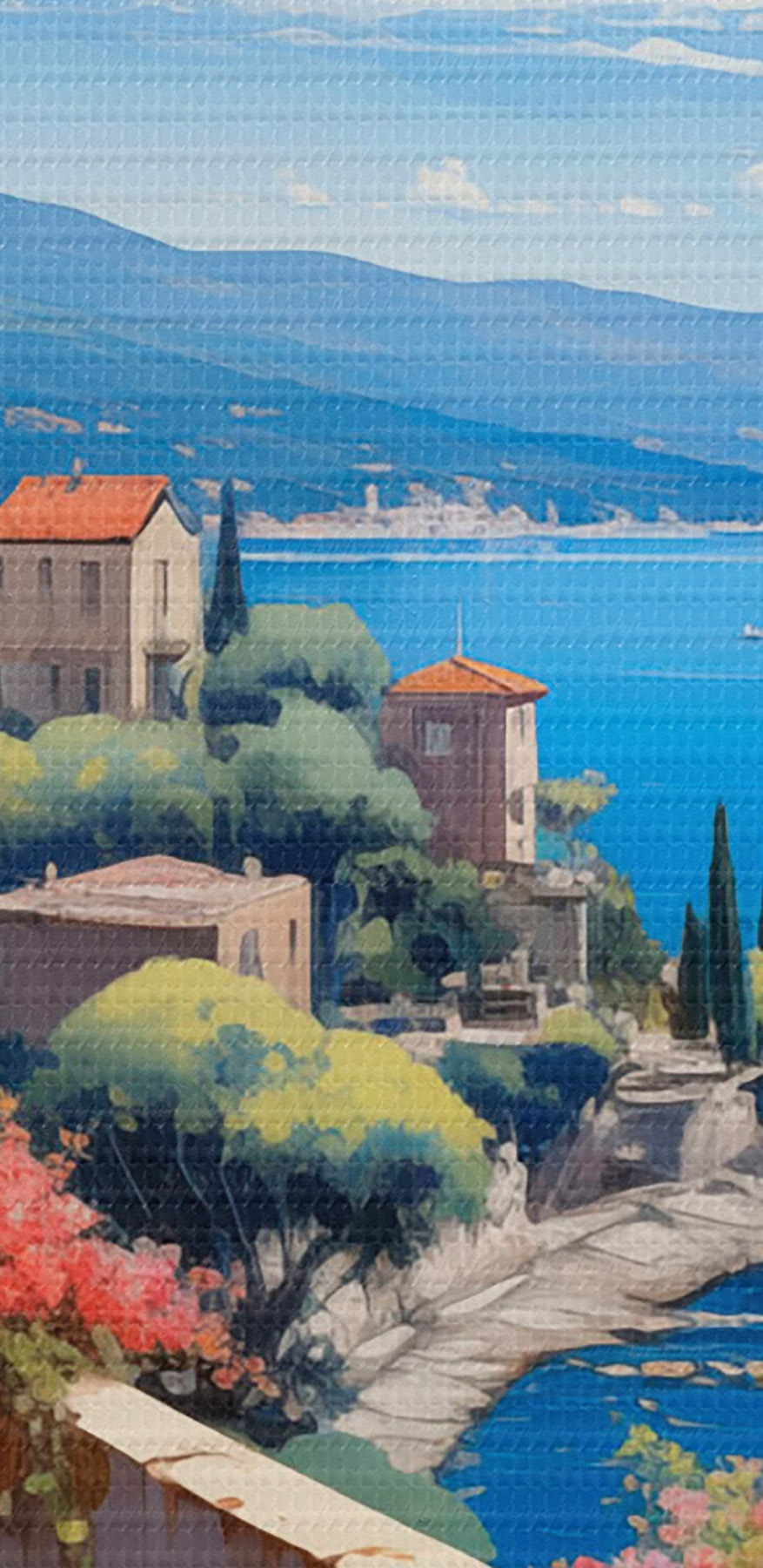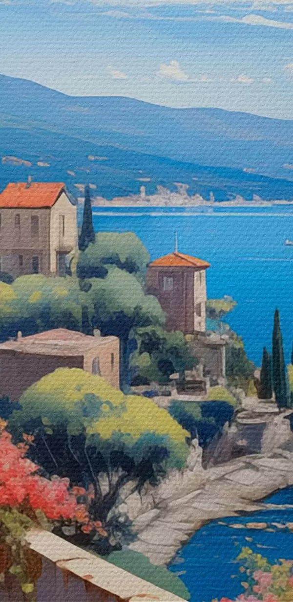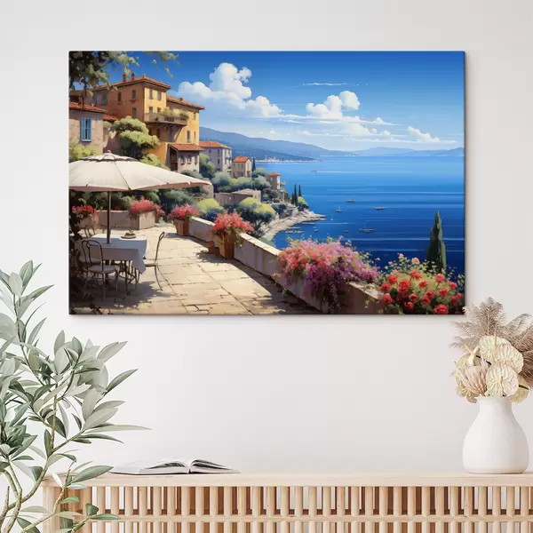 Paveikslas Viduržemio jūros kraštovaizdis su žydinčia meninio stiliaus terasa Nr s45053