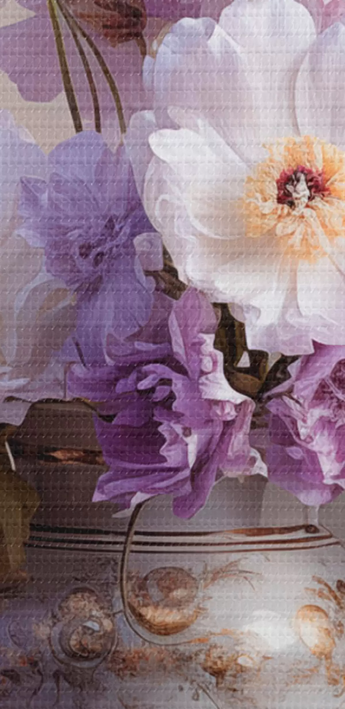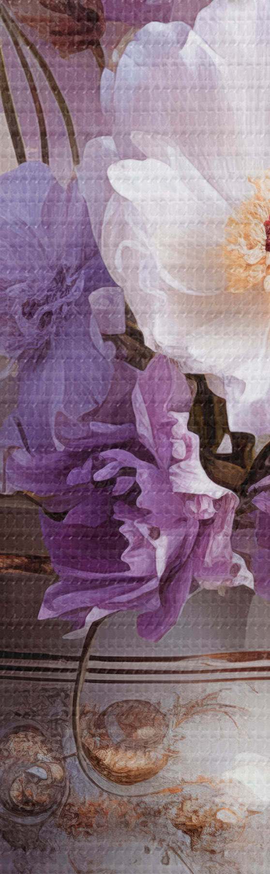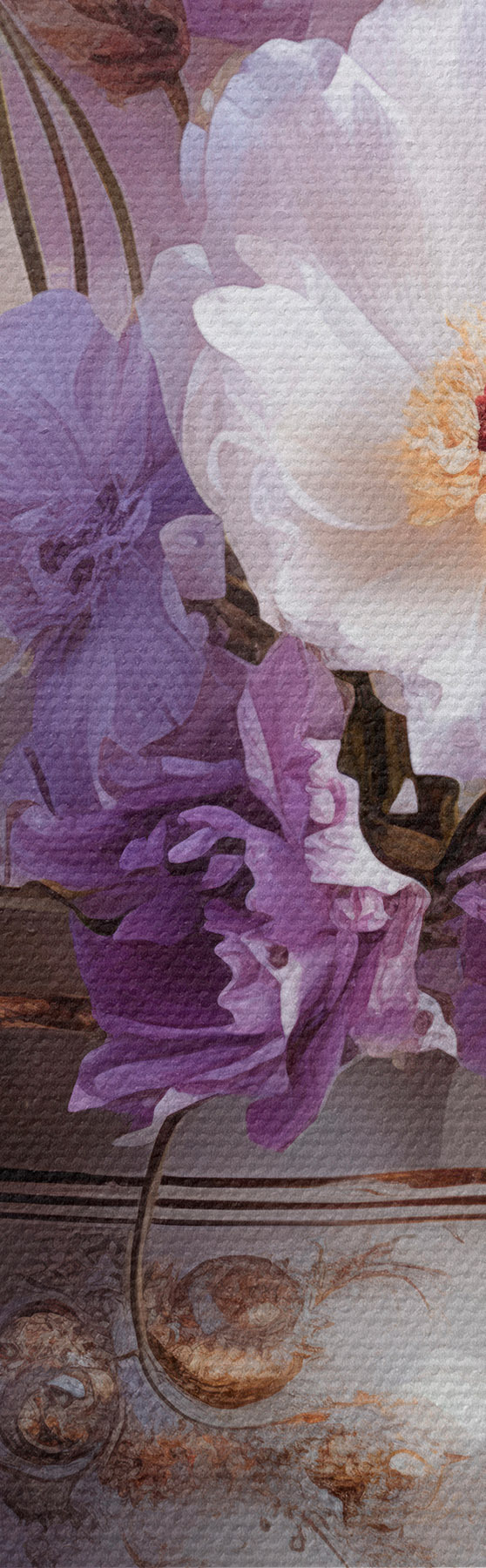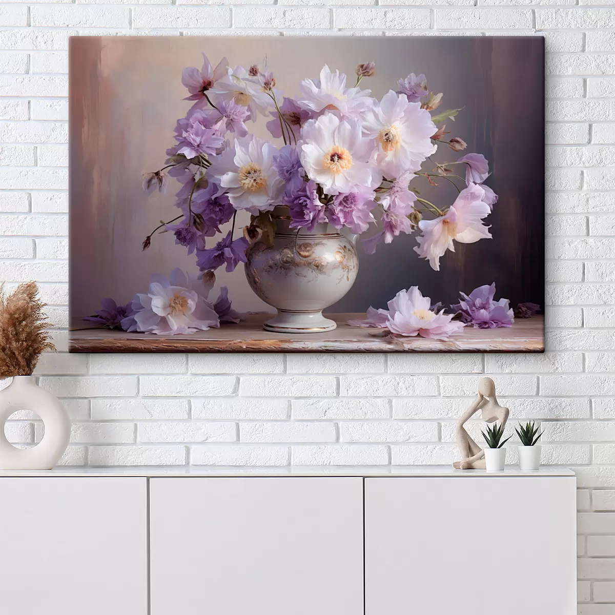 Paveikslas Gėlių natiurmortas: baltos ir violetinės gėlės meniniu stiliumi Nr s45058