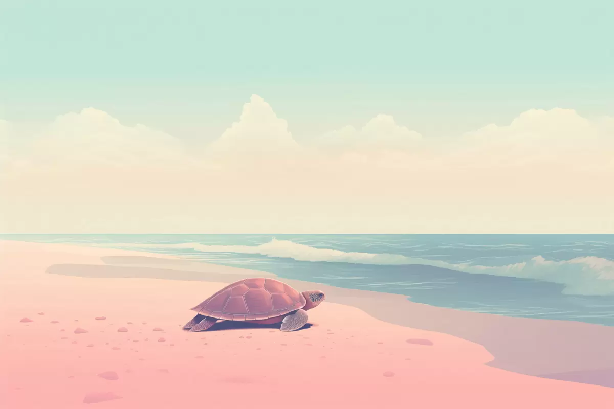 Paveikslas Jūrų vėžlys rausvame paplūdimyje: minimalistinis kraštovaizdis Nr s45059