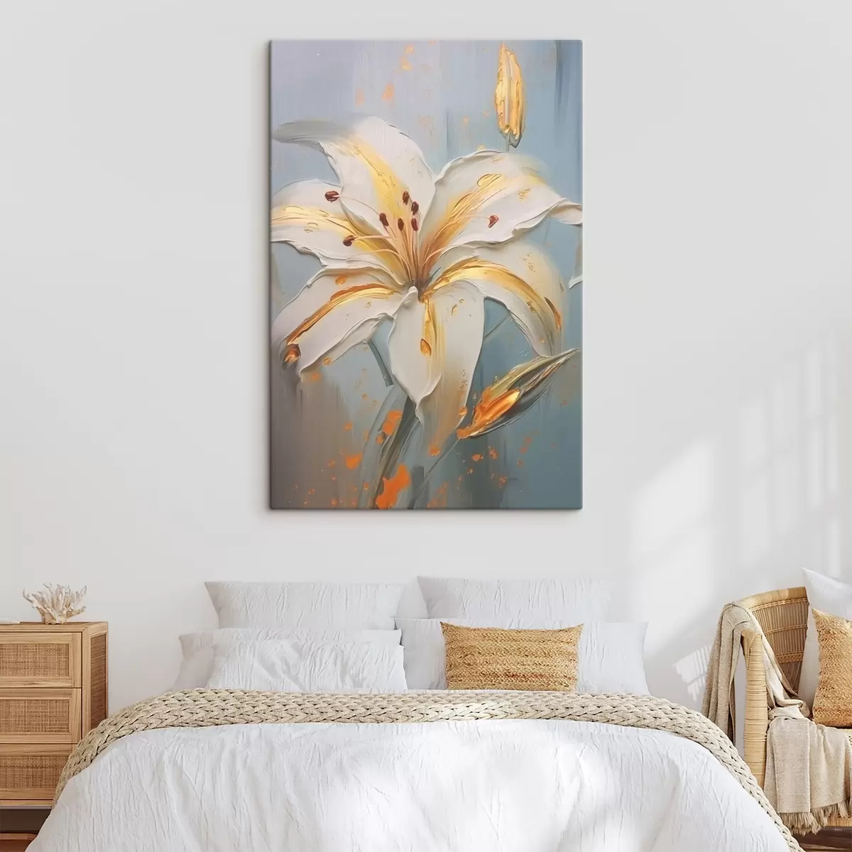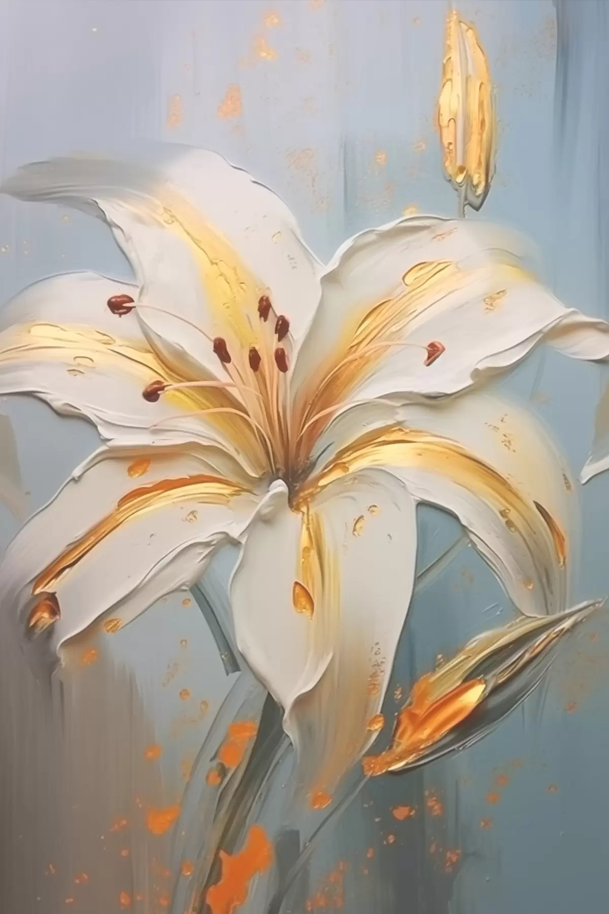 Paveikslas Balta lelija su geltonais brūkšneliais mėlyname fone Nr s45077