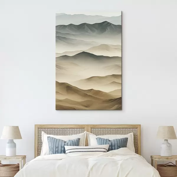 Paveikslas kalnai, sluoksniai, rūkas, minkštas gradientas, natūralus, smėlio spalvos, abstraktus, kraštovaizdis Nr s45095
