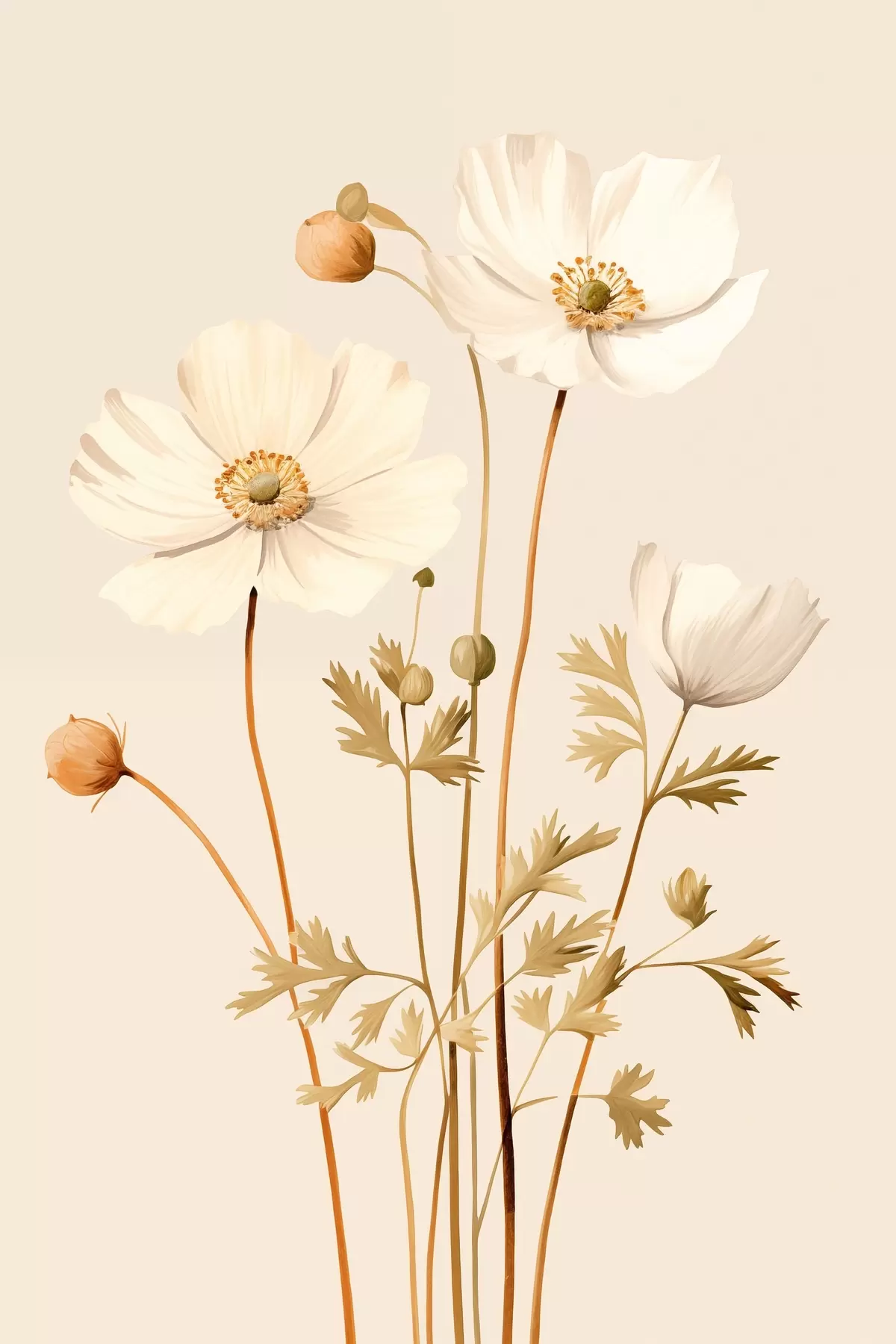 Paveikslas gėlė, botaninis, smėlio spalvos fonas, minkšti tonai, žiedlapiai, augalas, derliaus, minimalus Nr s45099