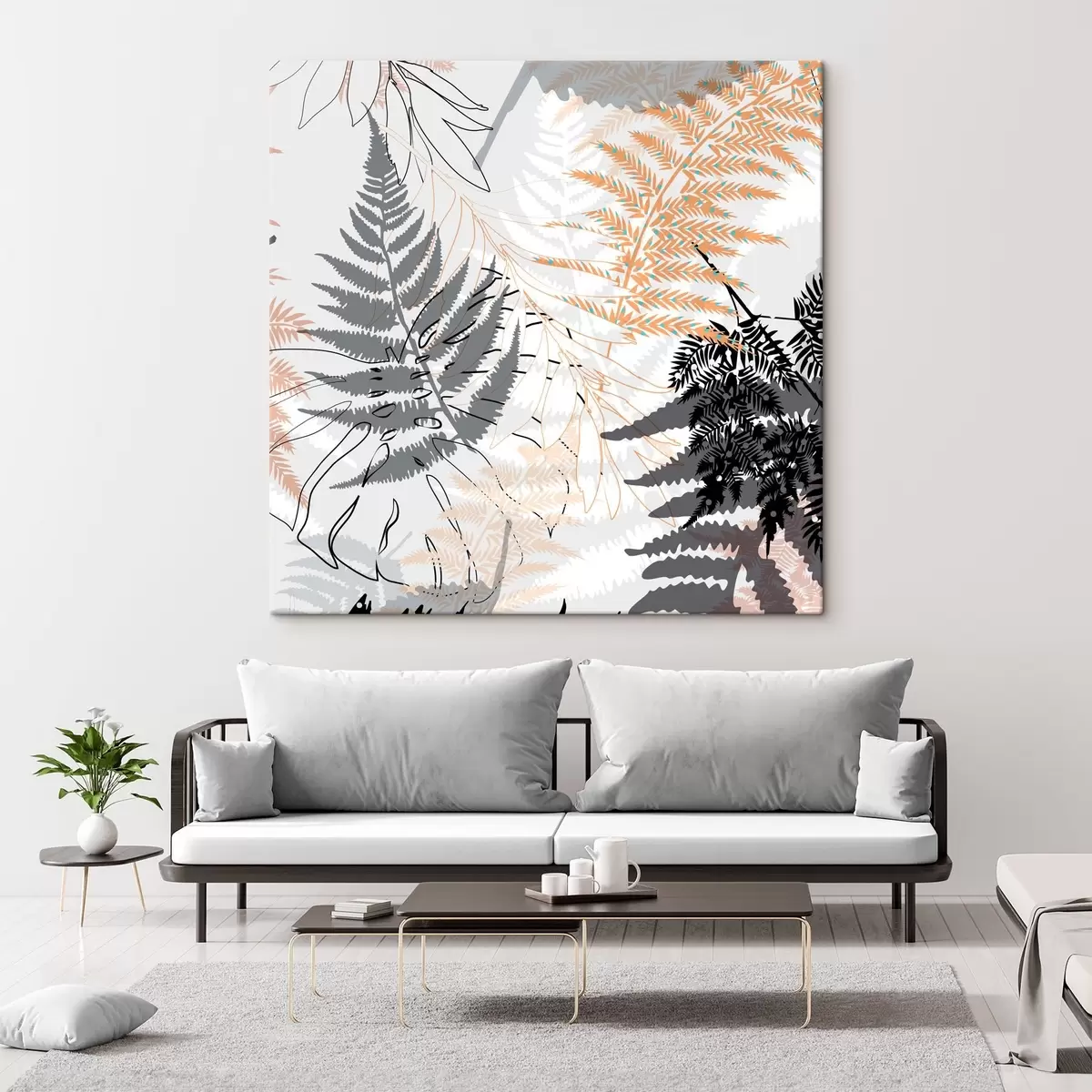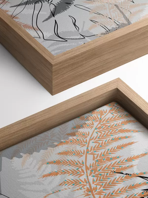 Paveikslas papartis, abstraktūs lapai, modelis, plokščias dizainas, kontrastas, pilki tonai, botaninis, perdanga Nr s45101