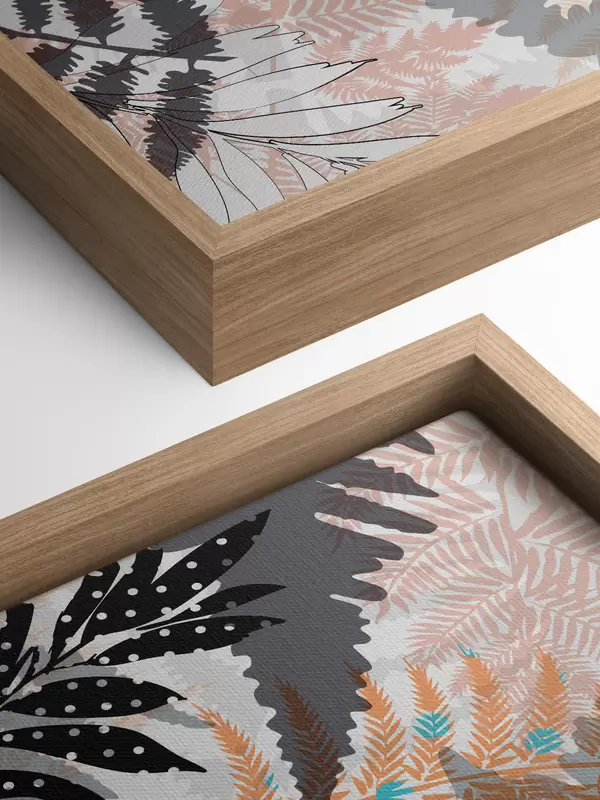 Paveikslas atogrąžų lapai, grafinis, tekstūra, smėlio ir juodos spalvos, siluetas, šiuolaikinis, augalas Nr s45103