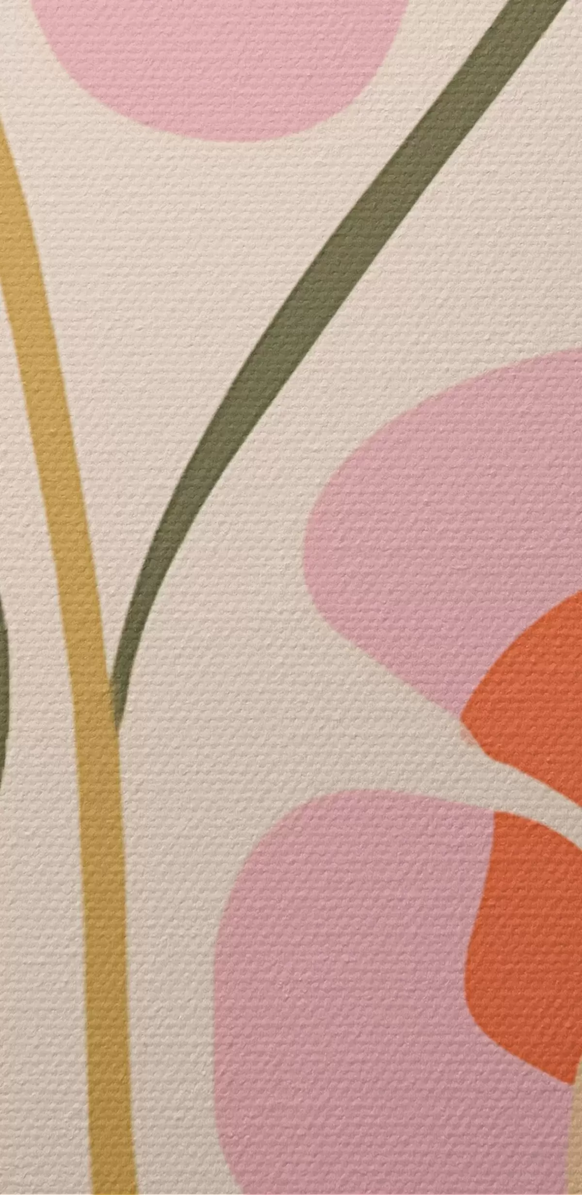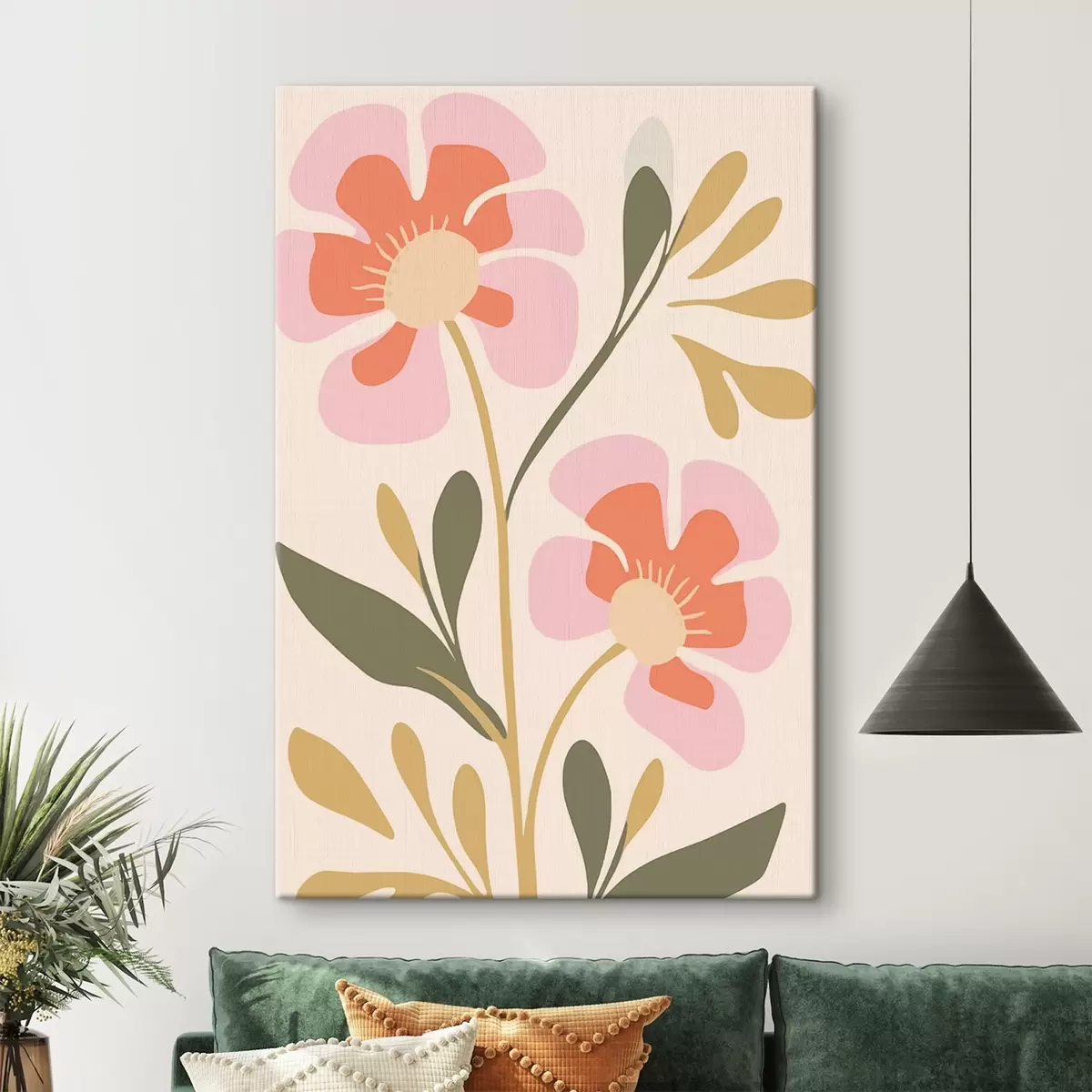 Paveikslas Stilizuotos rožinės ir oranžinės gėlės su žaliais lapais Nr s45140