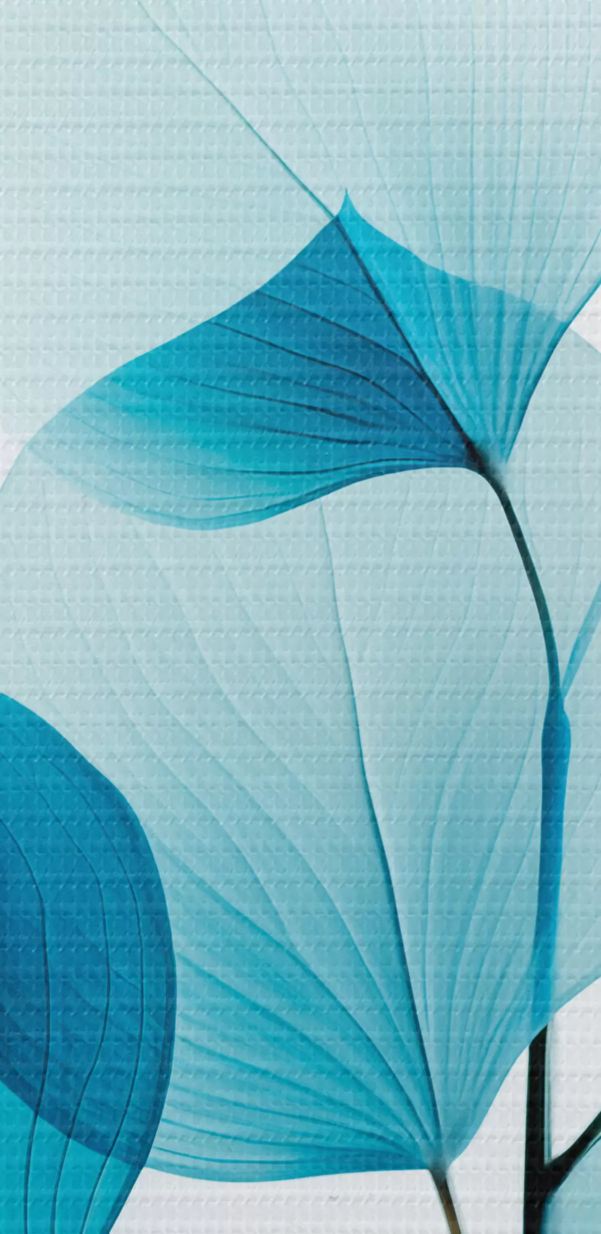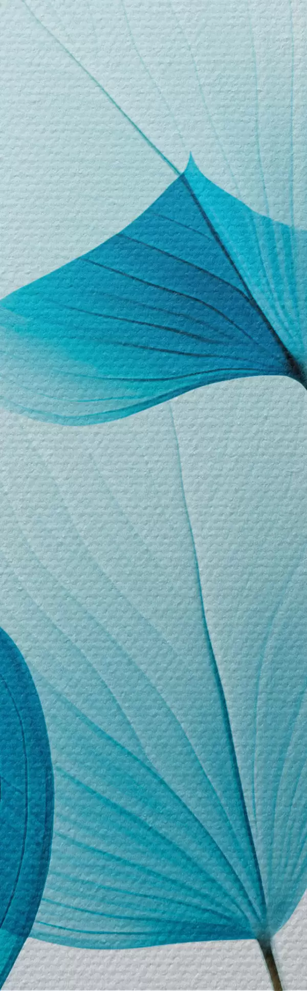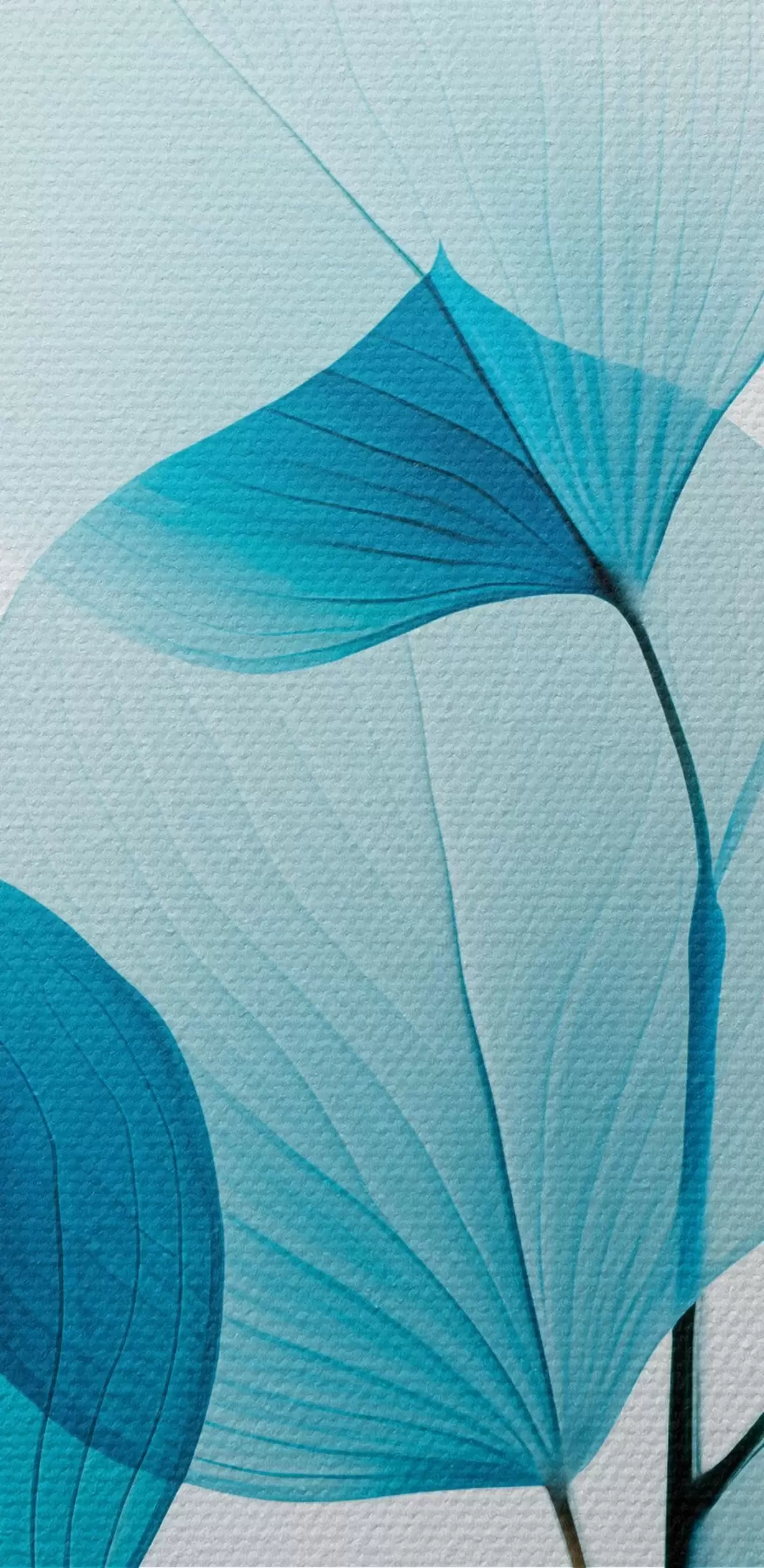 Paveikslas Šaka su permatomais mėlynais lapais, matomos subtilios gyslos, lengva ir rami kompozicija, minimalistinė estetika Nr s45175