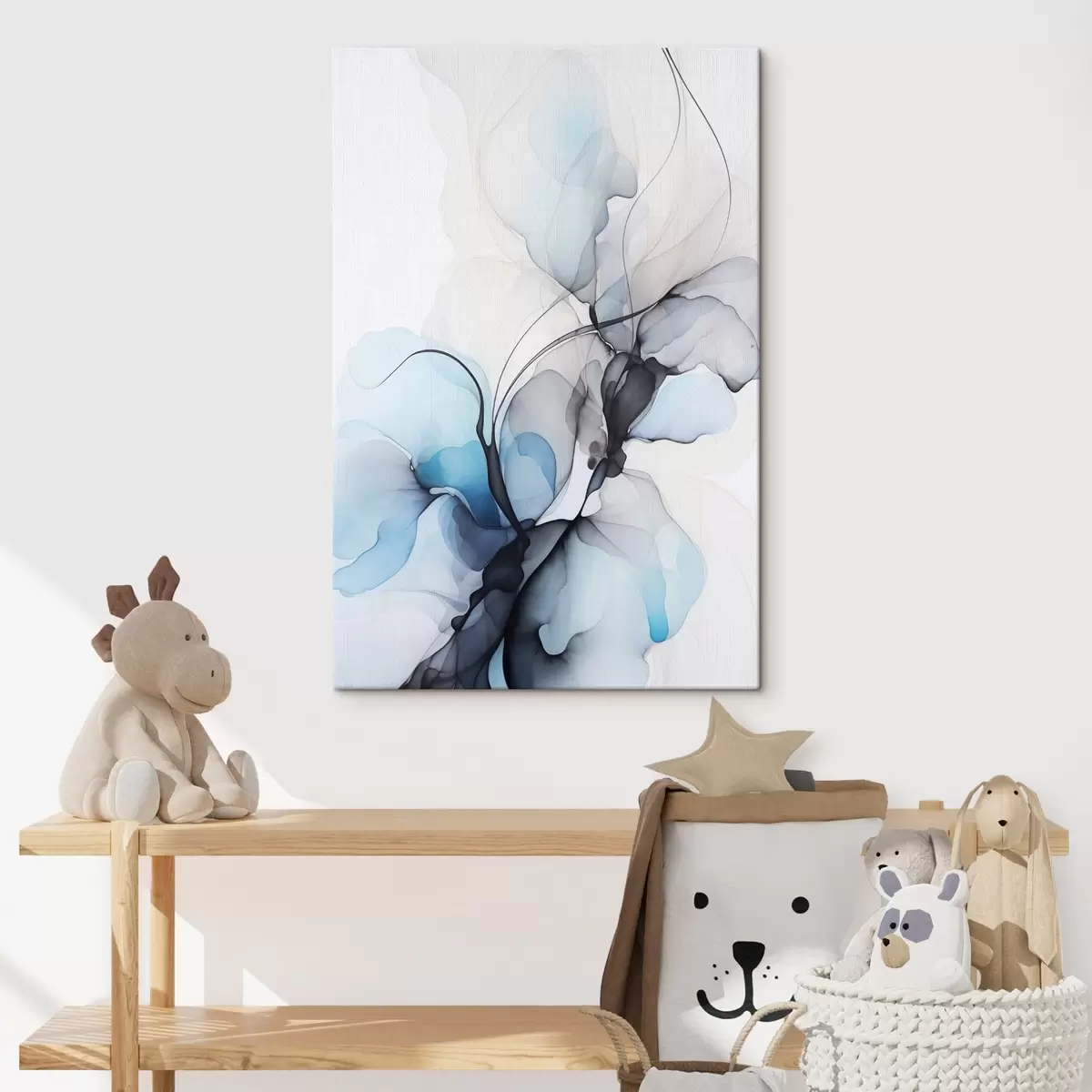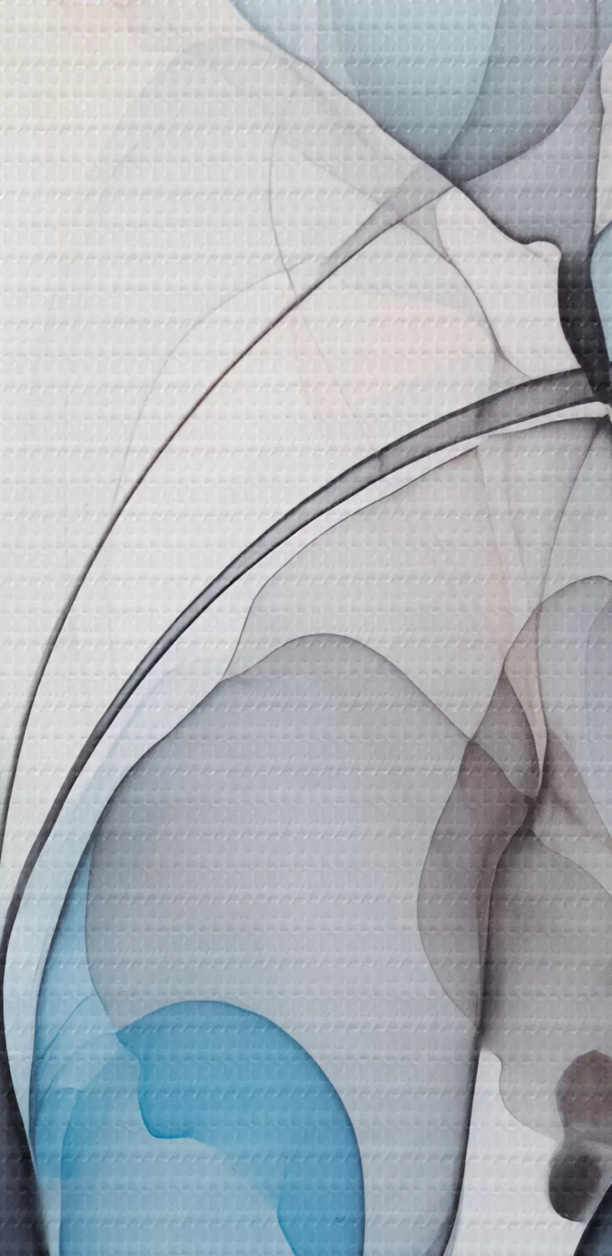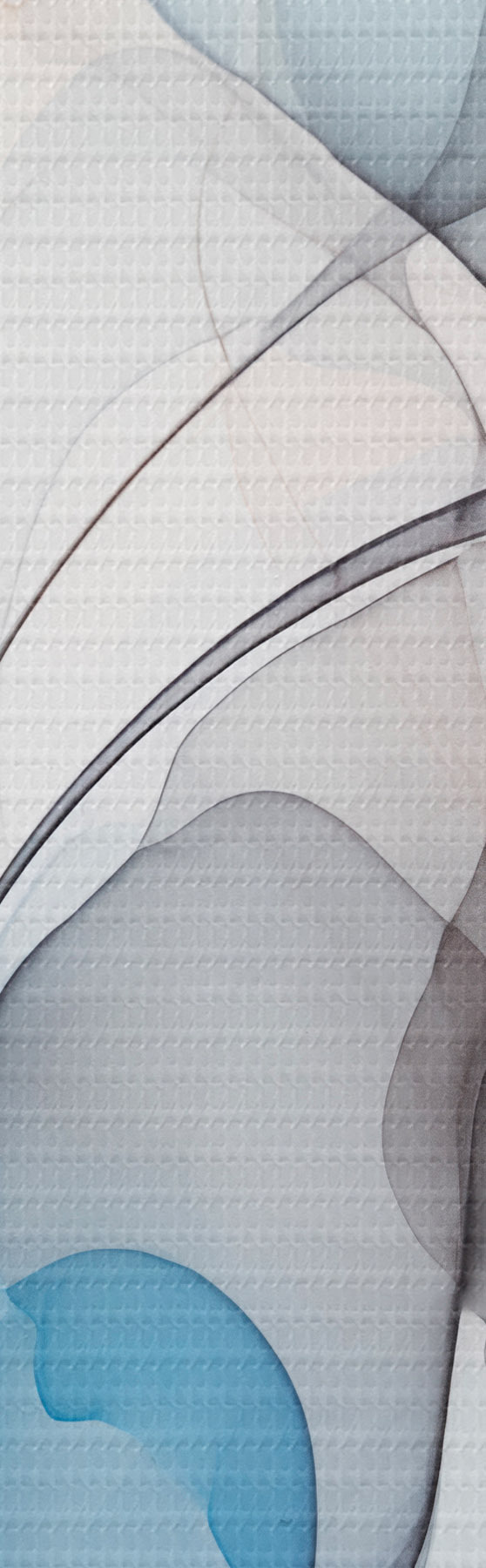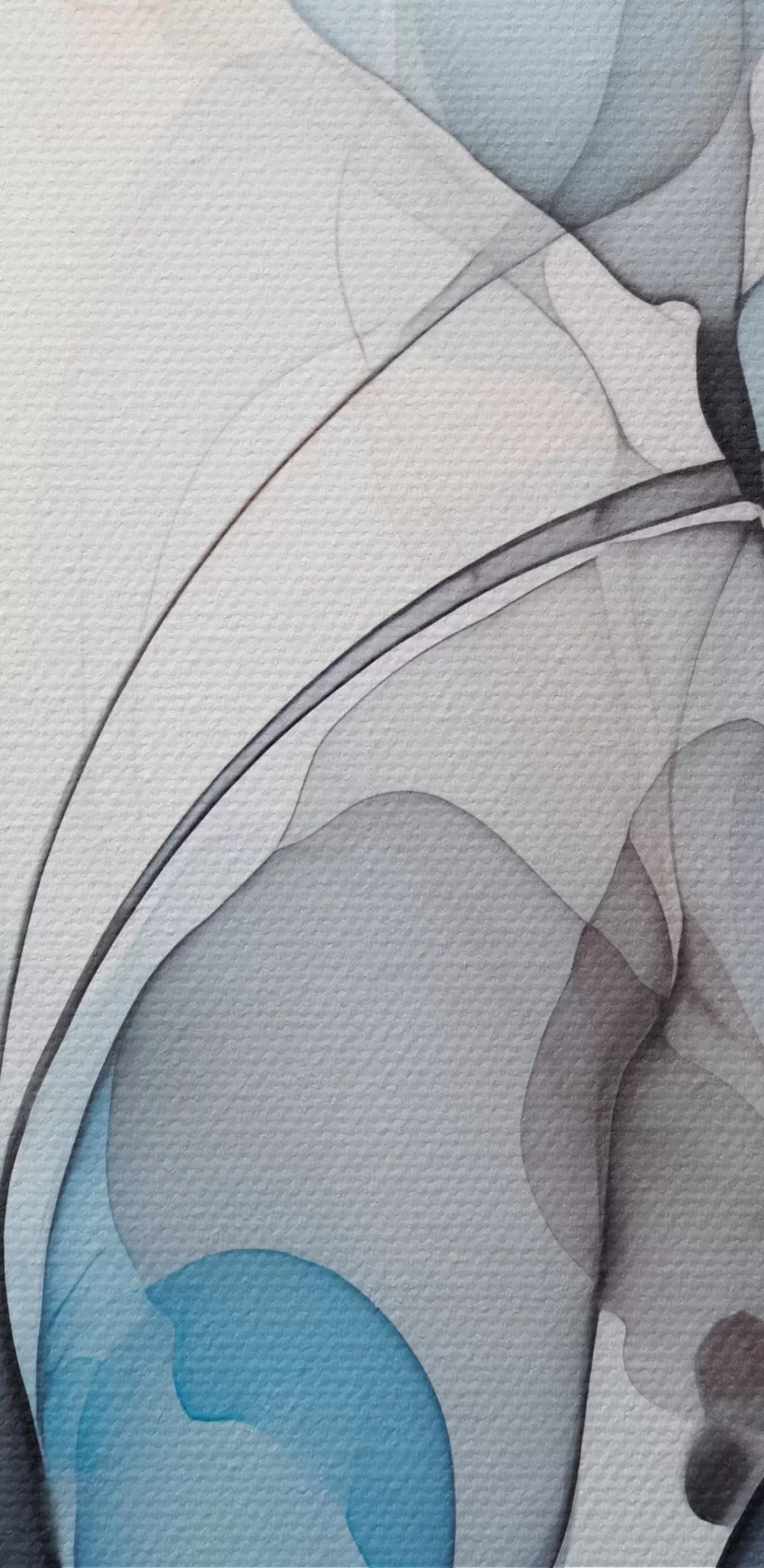 Paveikslas Abstrakti kompozicija su tekančiomis linijomis ir permatomais žiedlapiais mėlynos, baltos ir smėlio spalvos atspalviais, alkoholinio tušo imitacija Nr s45177
