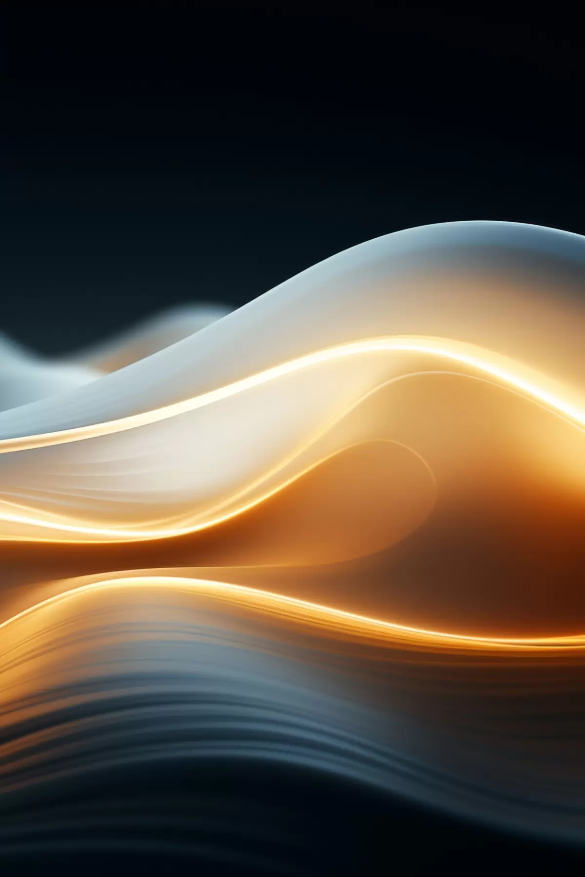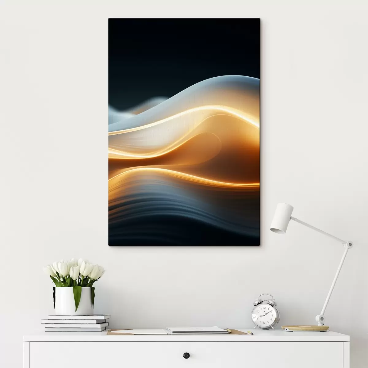 Paveikslas Abstrakčios tekančios formos su oranžinėmis linijomis, sklandžios kreivės ir linijos, dinamiška kompozicija, tamsus fonas Nr s45183
