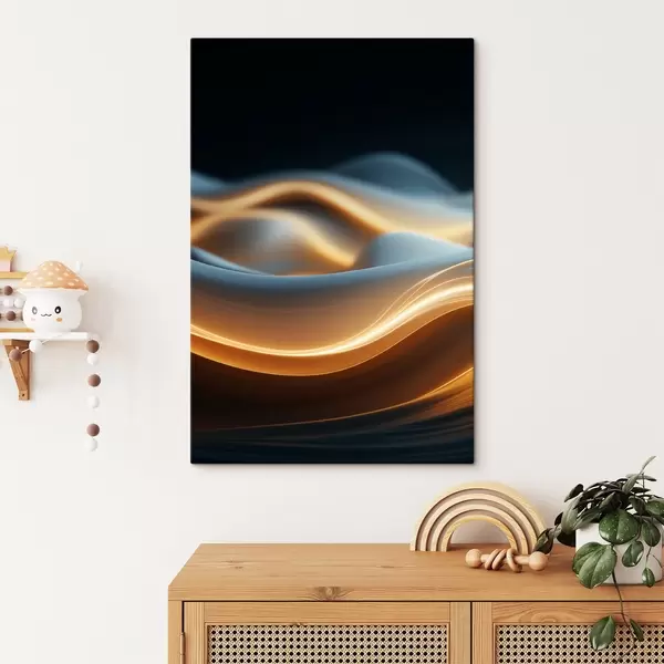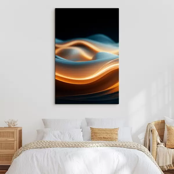 Paveikslas Abstrakčios tekančios formos su oranžinėmis linijomis, sklandžios kreivės ir linijos, dinamiška kompozicija, tamsus fonas Nr s45184