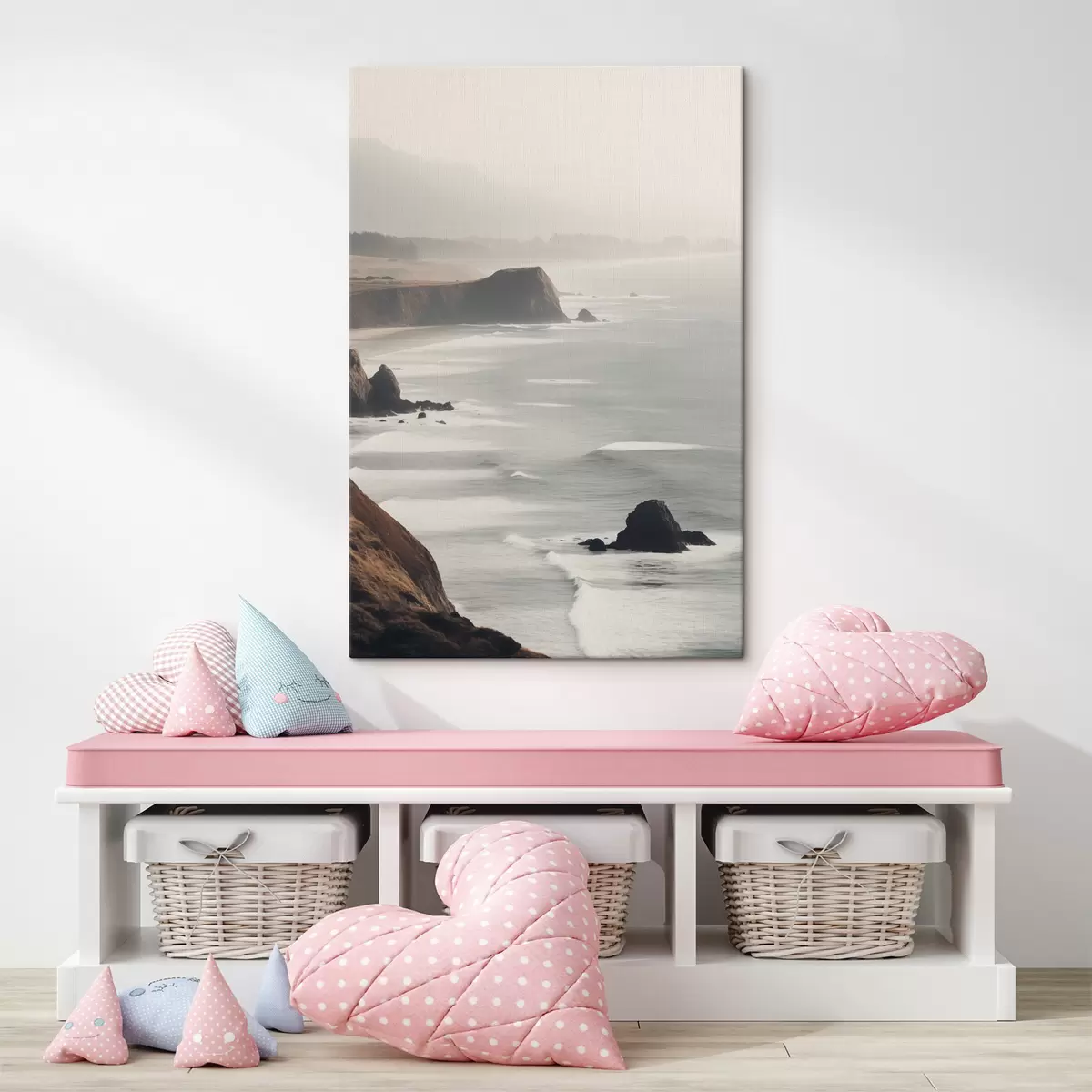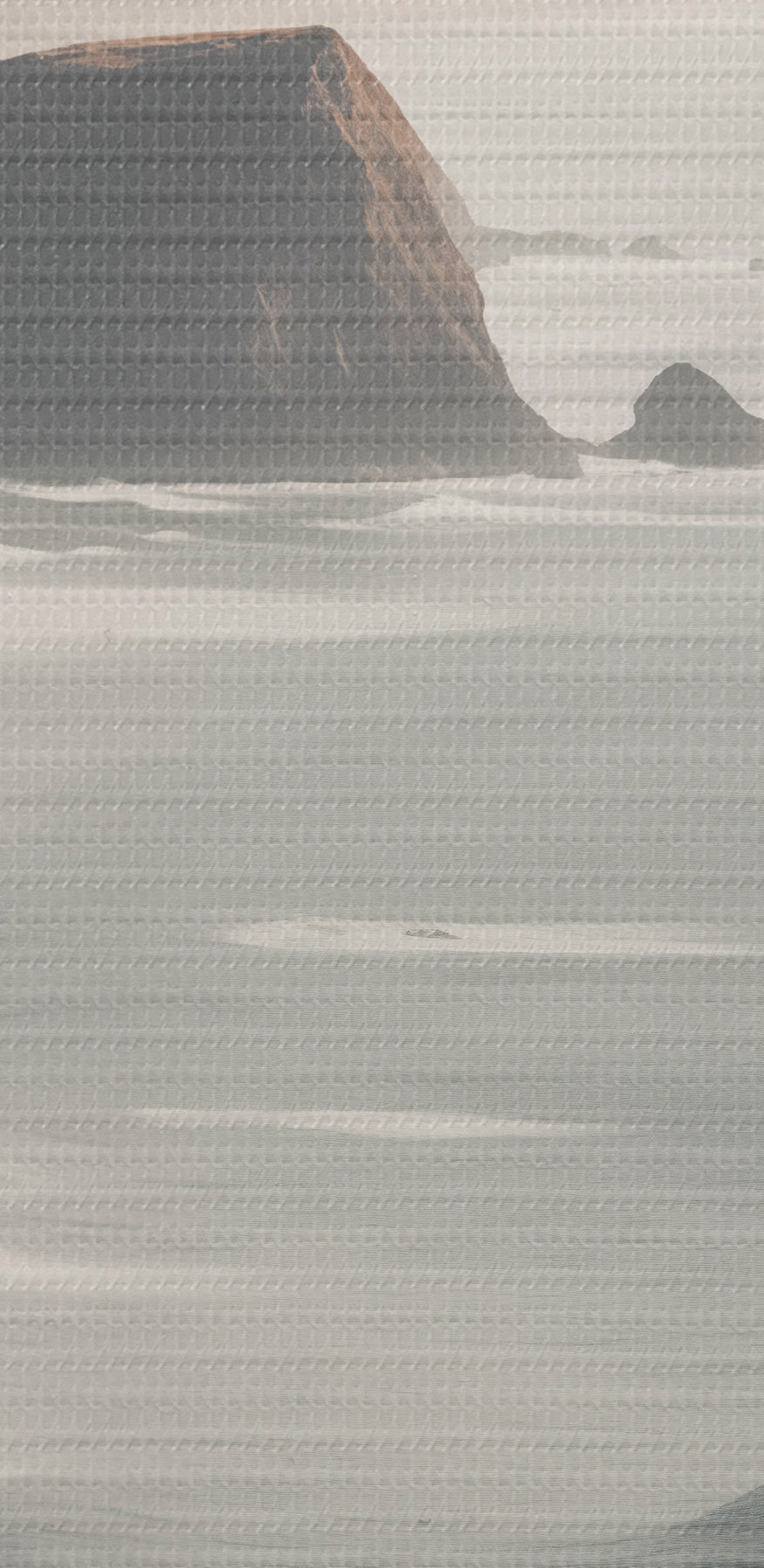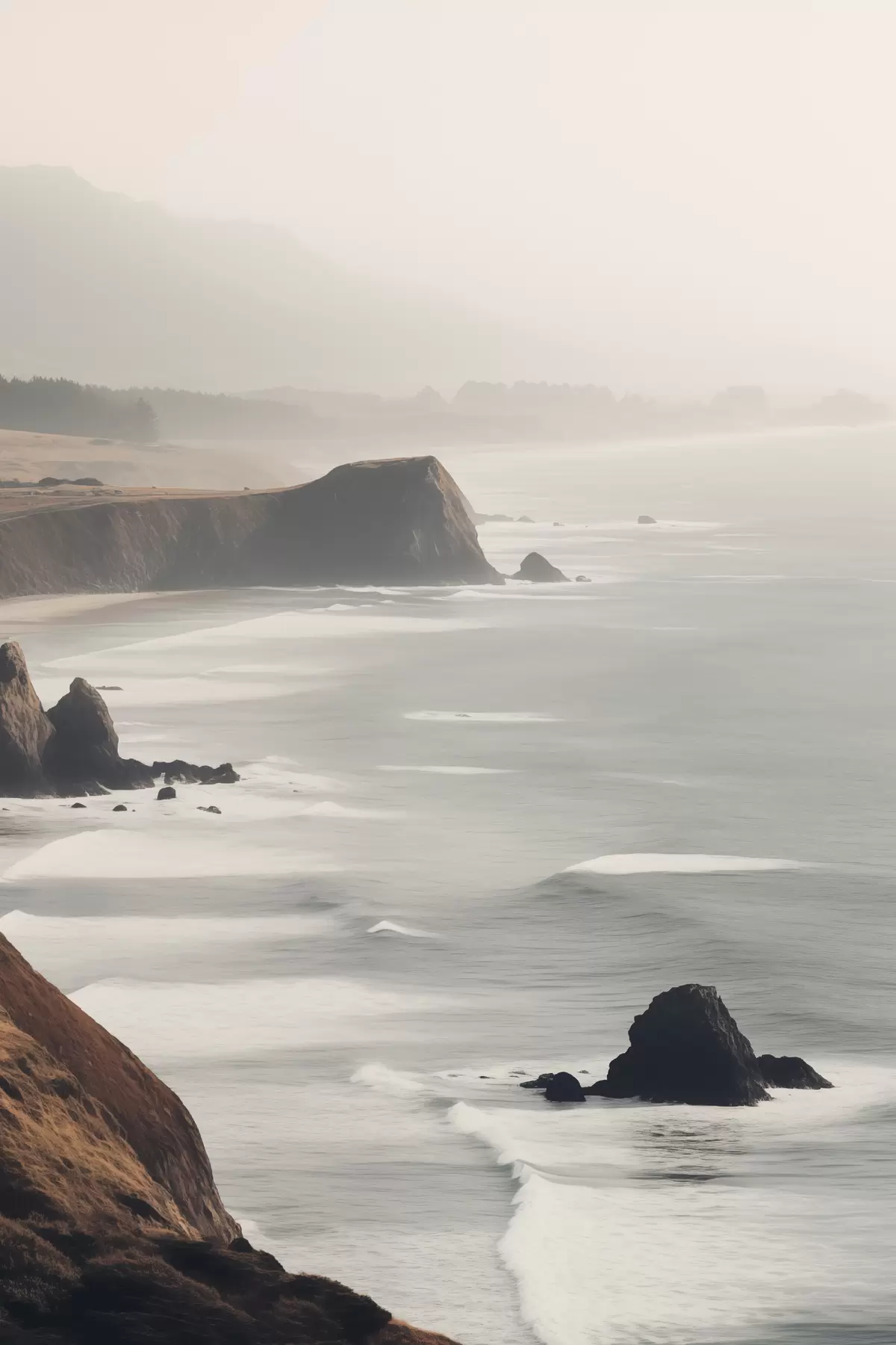 Paveikslas Uolėtos uolos ir jūros pakrantė, į krantą atsimušančios bangos, nuotaikingas kraštovaizdis, žemės atspalviai Nr s45194