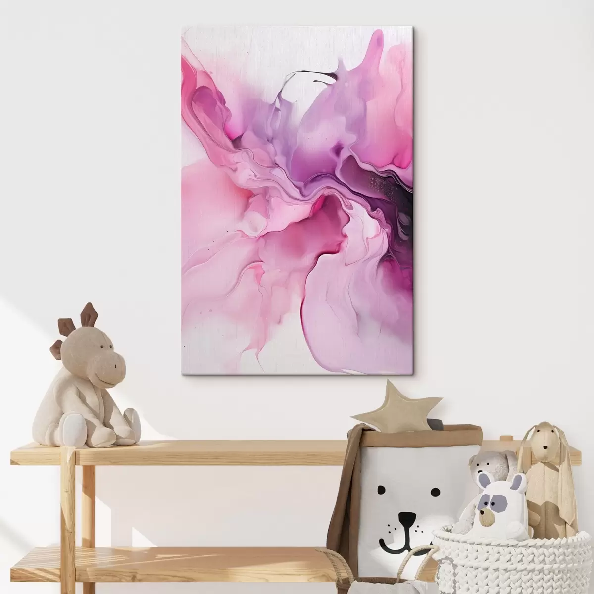 Paveikslas Abstraktūs rausvos, violetinės ir juodos spalvos sūkuriai susilieja į sklandžią, organišką kompoziciją ir sukuria judėjimo įspūdį Nr s45195