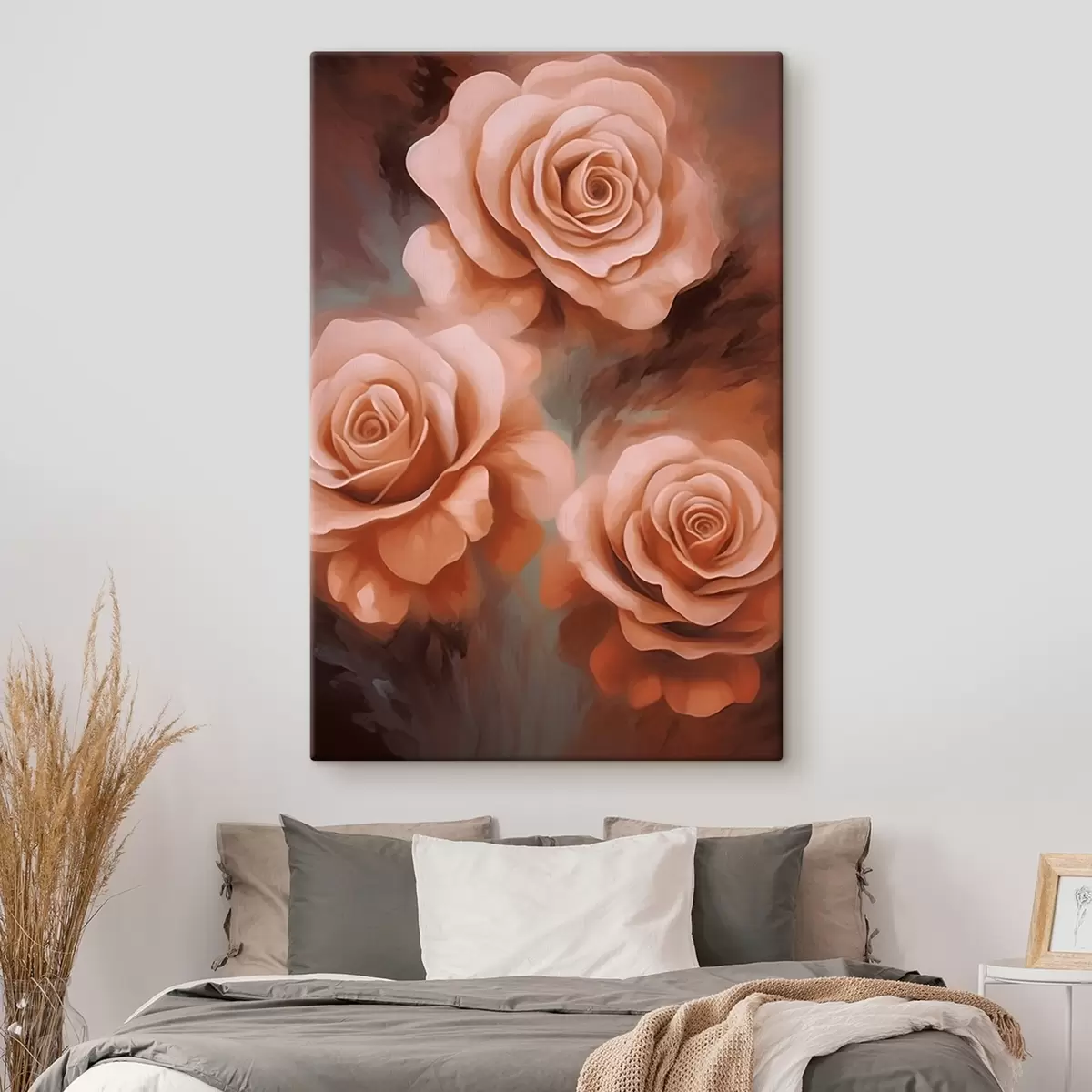 Paveikslas Trys rožinės rožės neryškiame fone Nr s45222