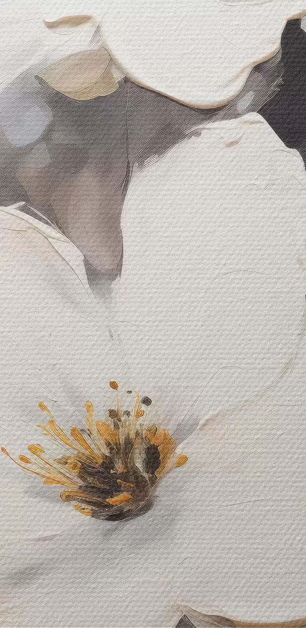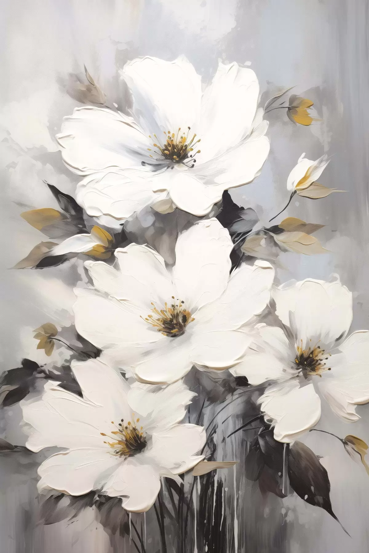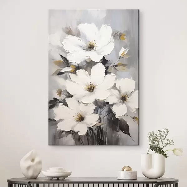 Paveikslas Baltos gėlės: tūrinė tapyba pilkame fone Nr s45252