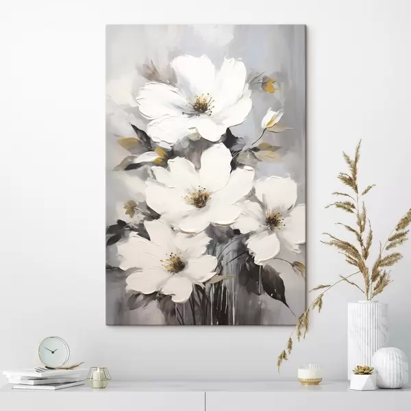 Paveikslas Baltos gėlės: tūrinė tapyba pilkame fone Nr s45252