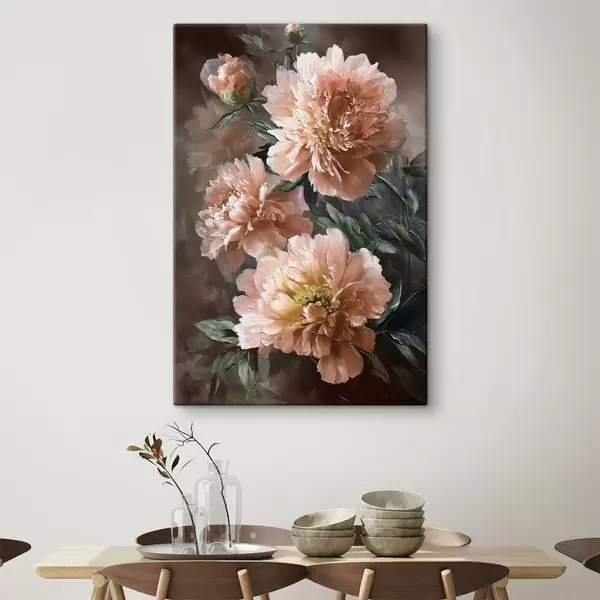 Paveikslėlis Rausvų bijūnų puokštė su drąsiais brūkšniais tamsiame fone s45260