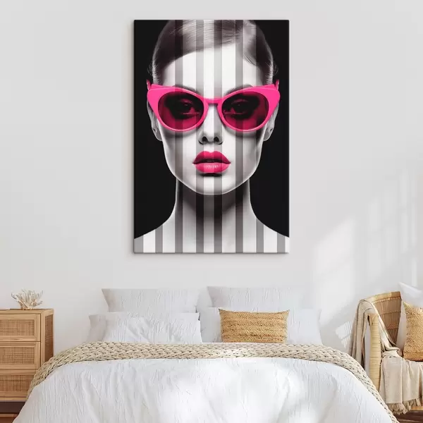 Paveikslas Moteris, dėvinti rožinius akinius su juodais ir baltais dryžiais Nr s45315