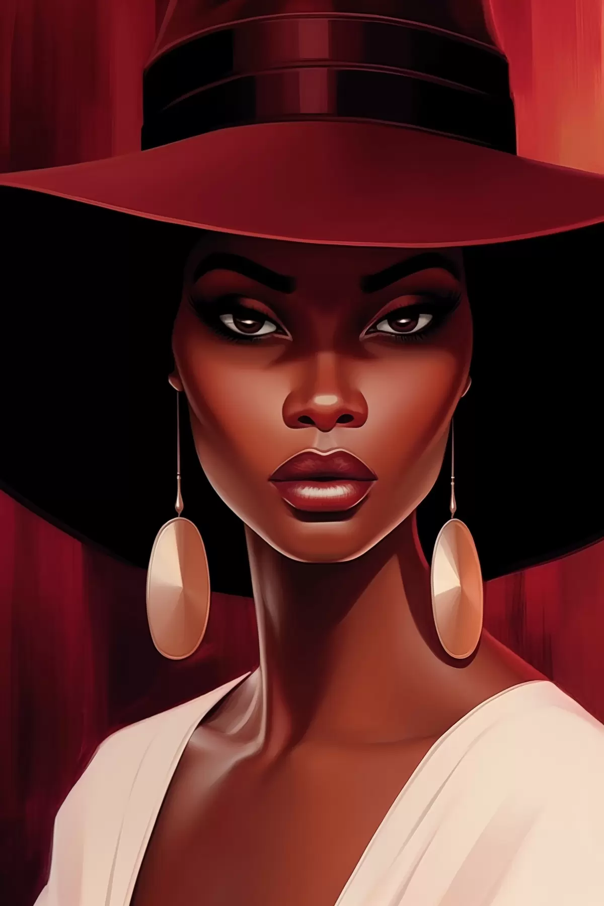 Paveikslėlis Moteris su skrybėle ir apvaliais auskarais s45325