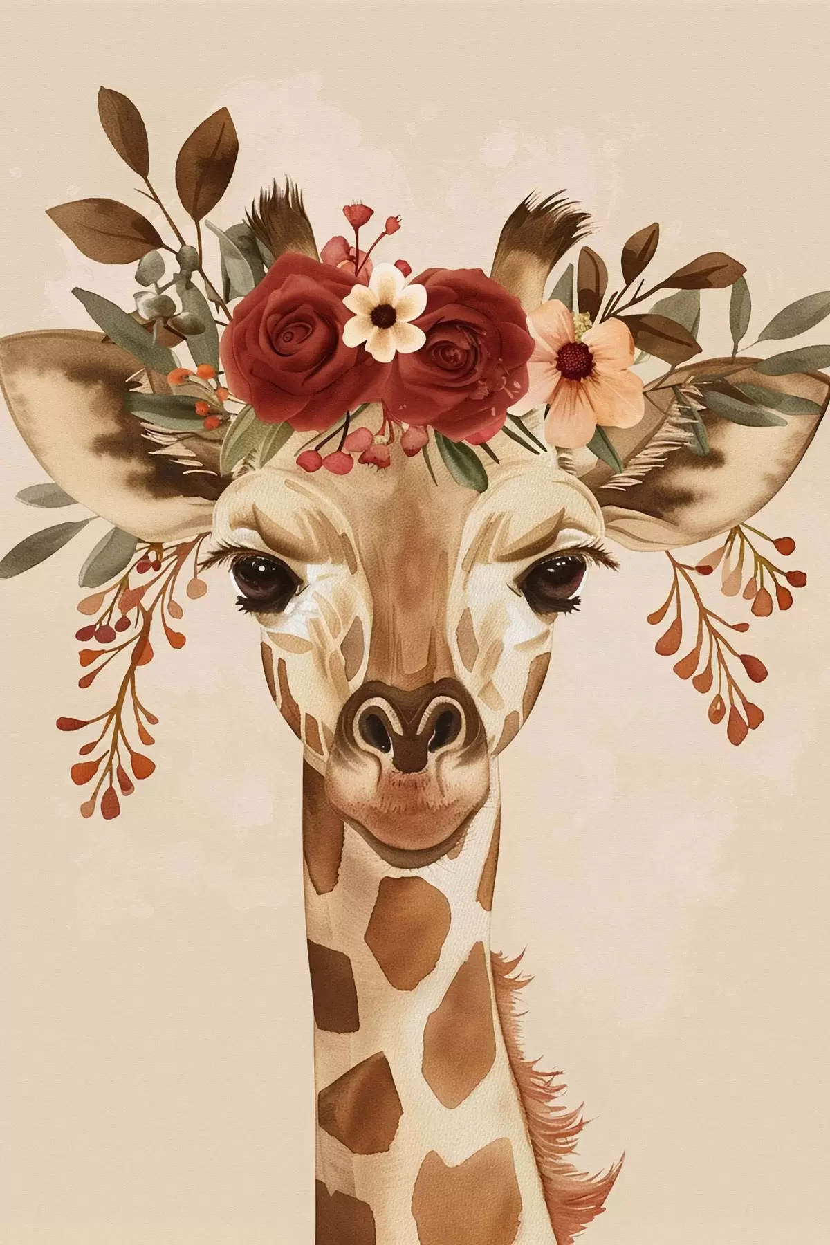 Paveikslas Akvarelės stiliaus žirafa su gėlėmis ant galvos Nr s45331