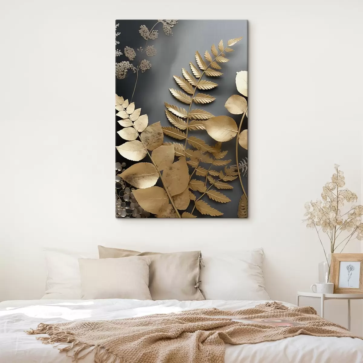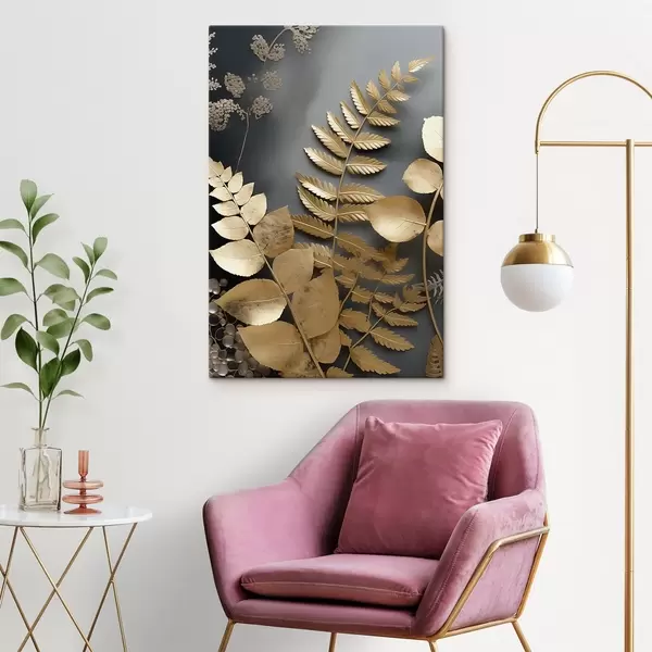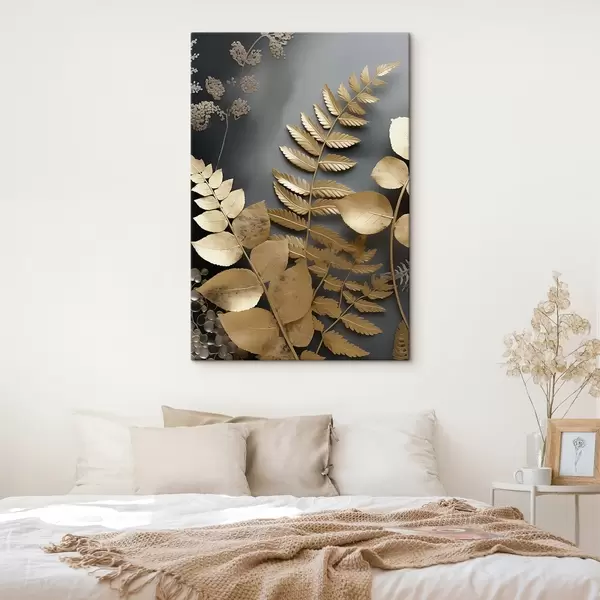 Paveikslas Eukaliptų šakos ir atogrąžų lapai tamsiame fone Nr s45333