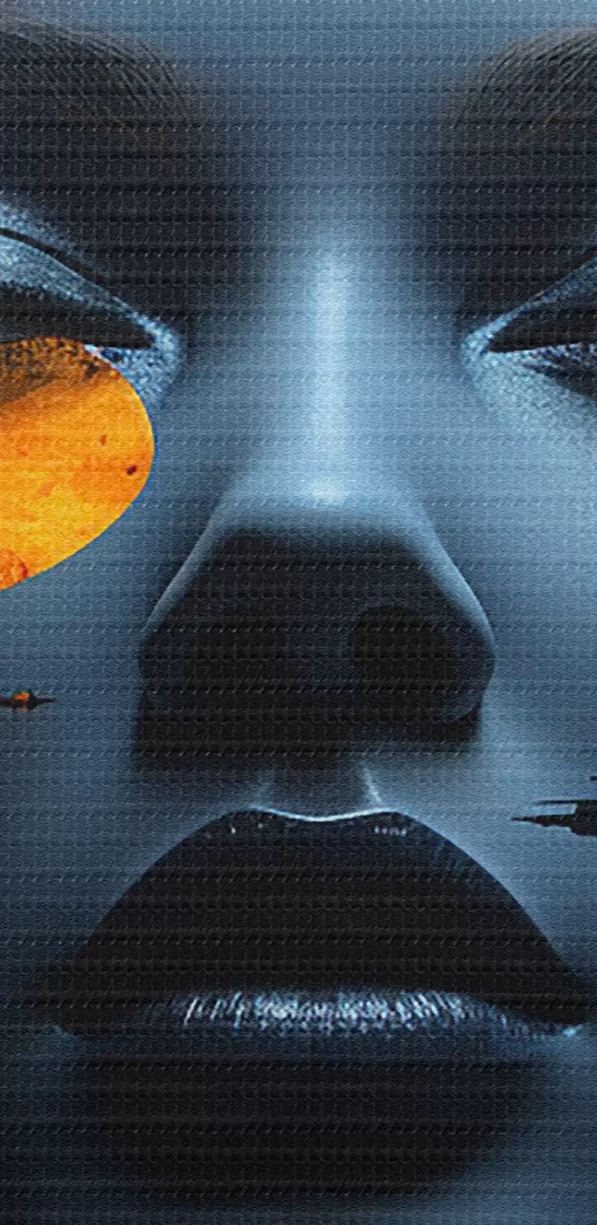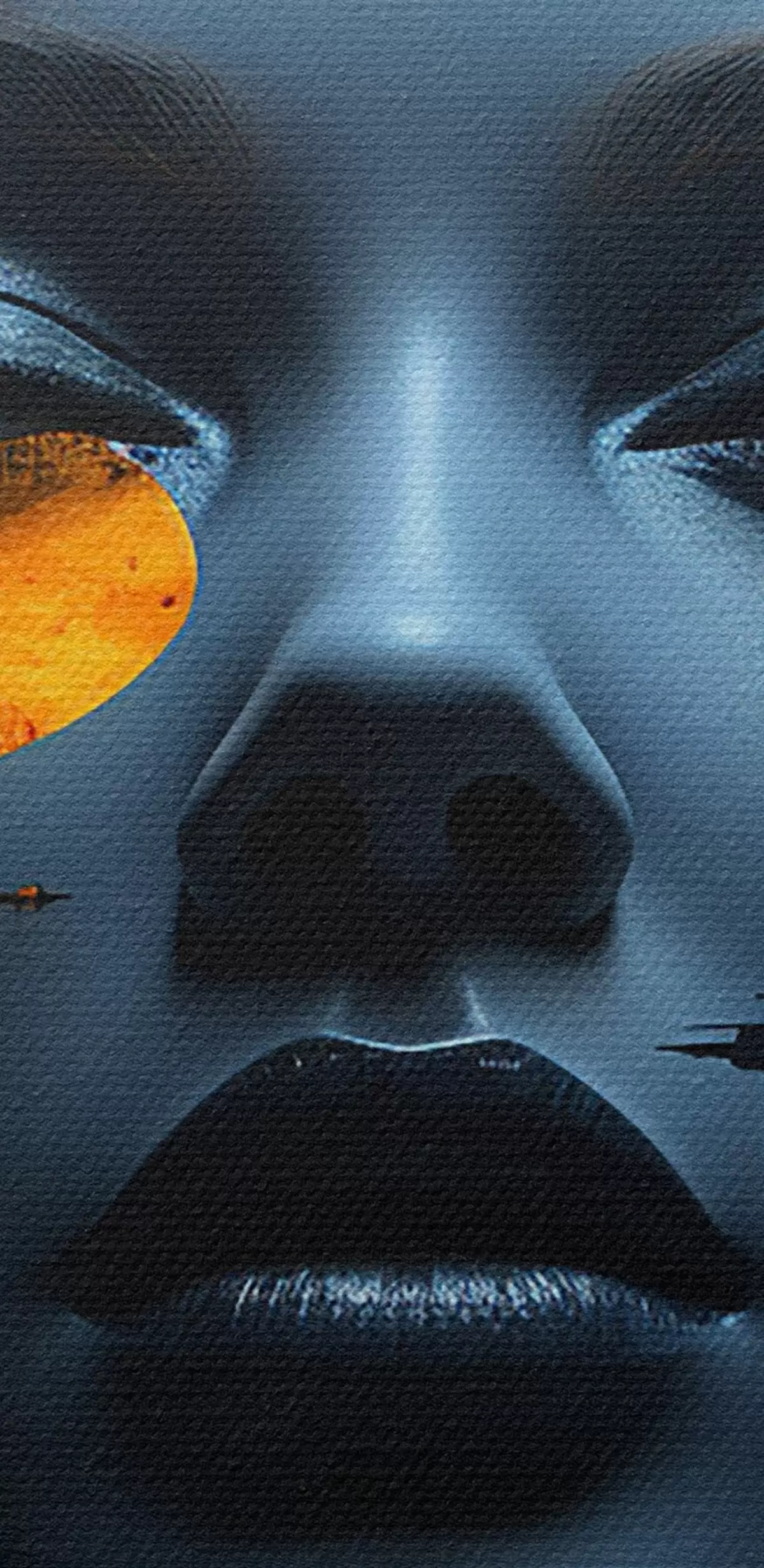 Paveikslas Žmonės, mergaitės veidas miesto fone, abstraktus Nr s45341