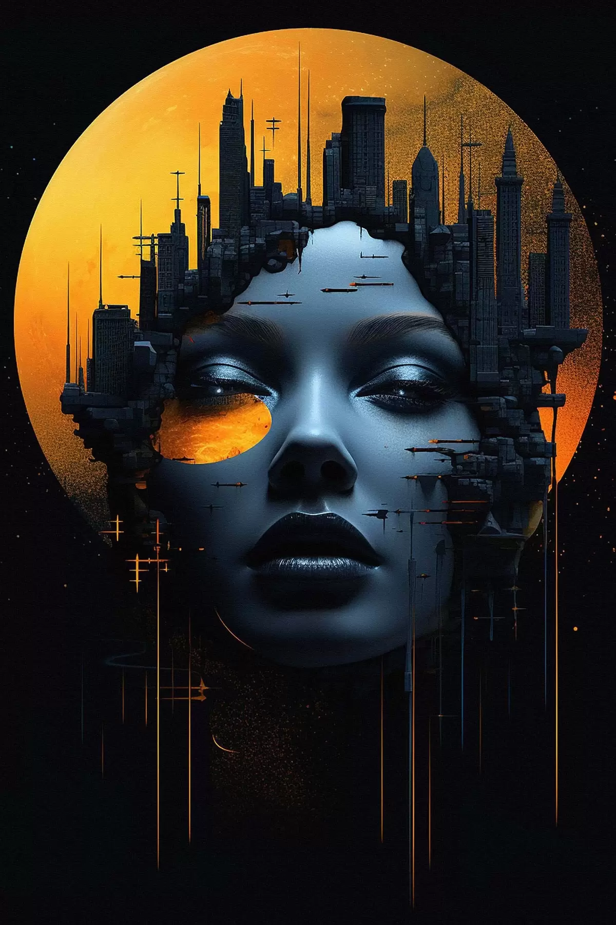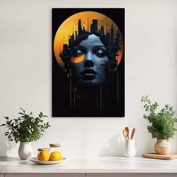Paveikslas Žmonės, mergaitės veidas miesto fone, abstraktus Nr s45341