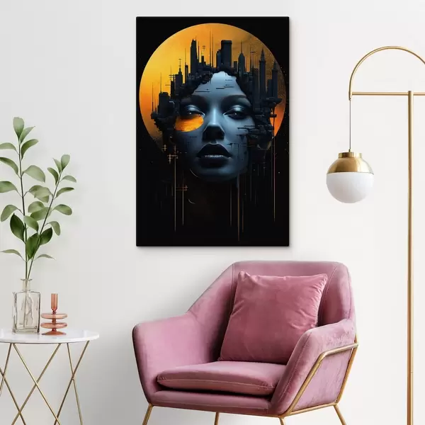 Paveikslas Žmonės, mergaitės veidas miesto fone, abstraktus Nr s45341