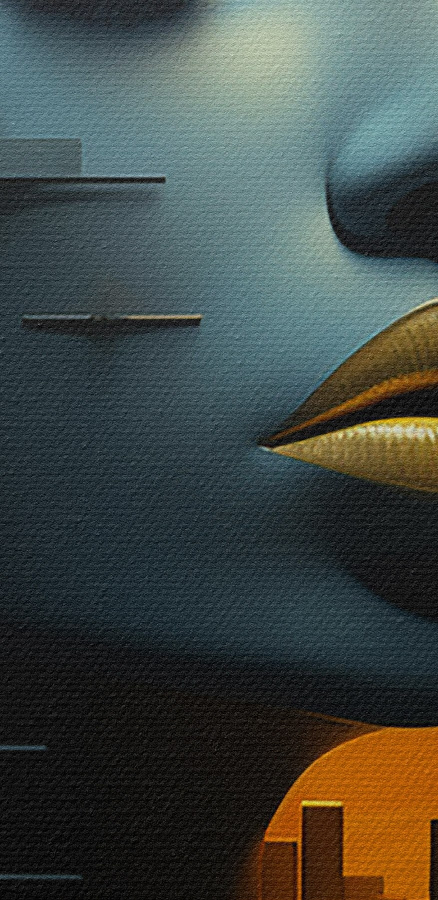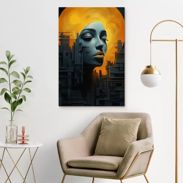 Paveikslas Žmonės, mergaitės veidas mieste abstrakčiame fone Nr s45342