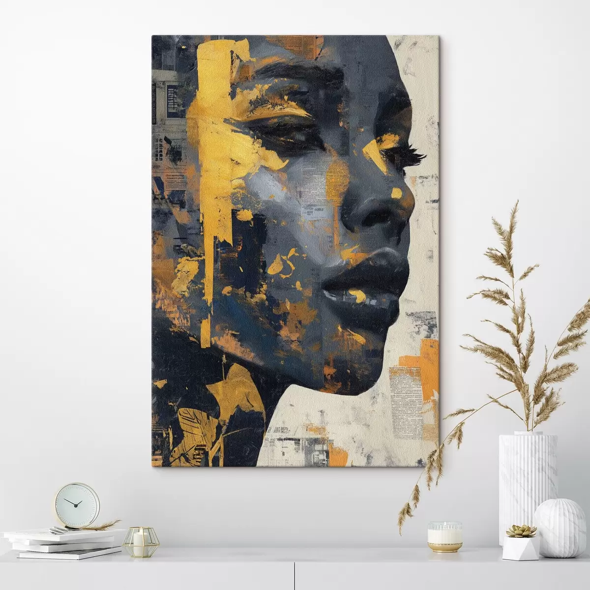 Paveikslas Mišrios medijos portretas su laikraščių fragmentais ir dekoratyviniais potėpiais Nr s45420