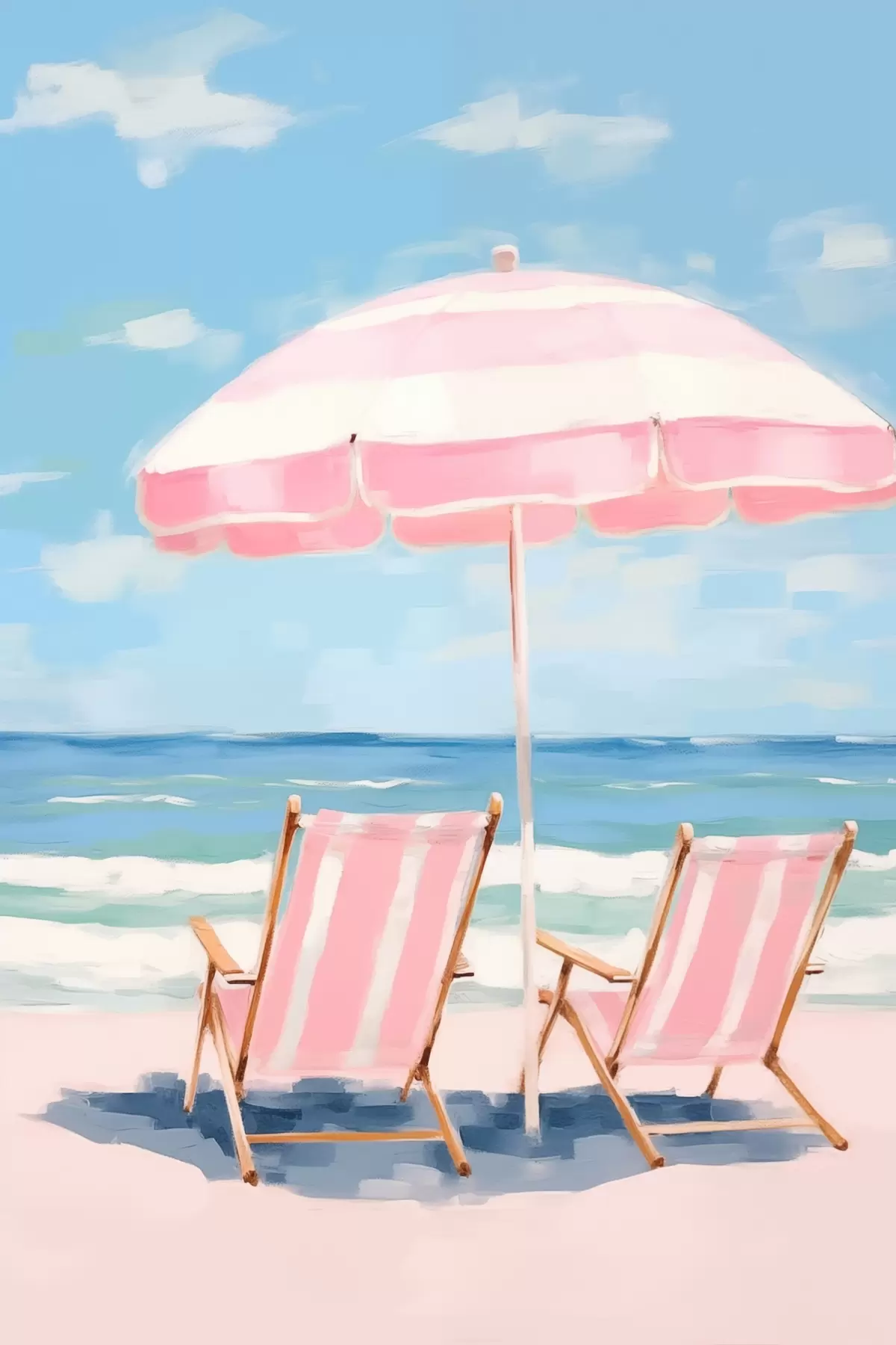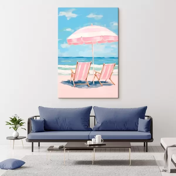 Paveikslas Paplūdimio skėtis ir gultai pakrantėje Nr s45442