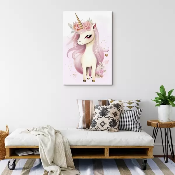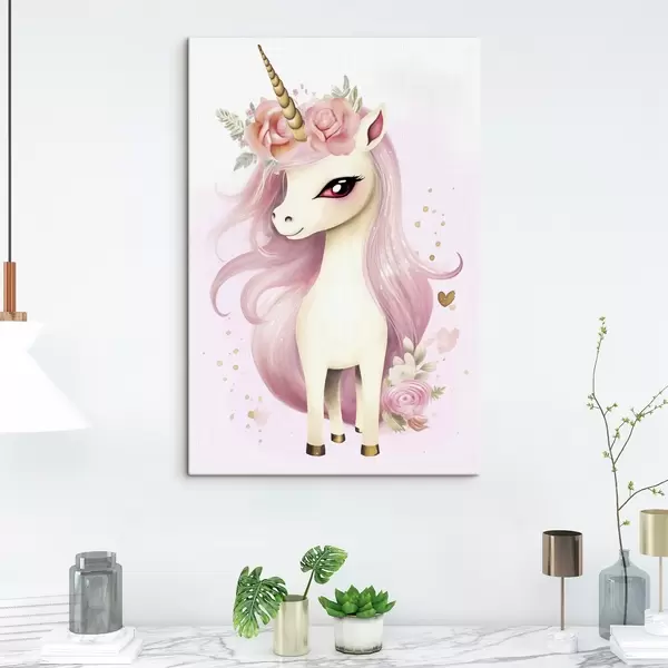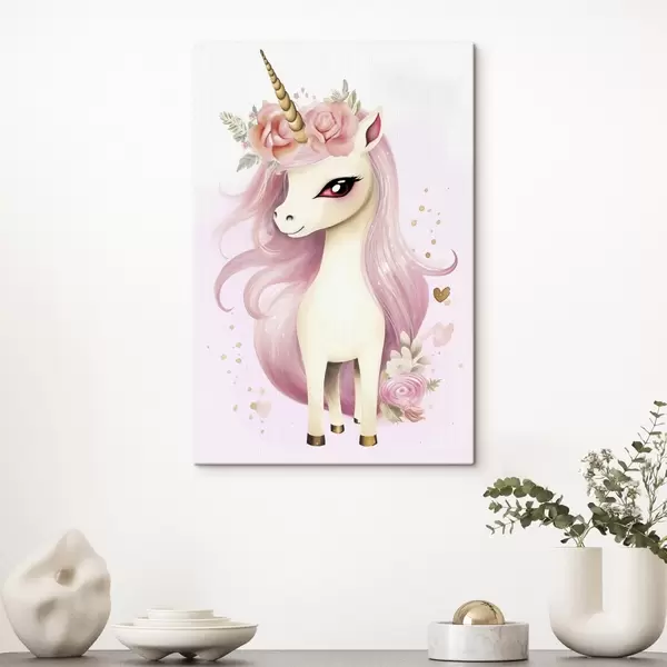 Paveikslas Vienaragis su rožine griva ir gėlių vainiku Nr s45484