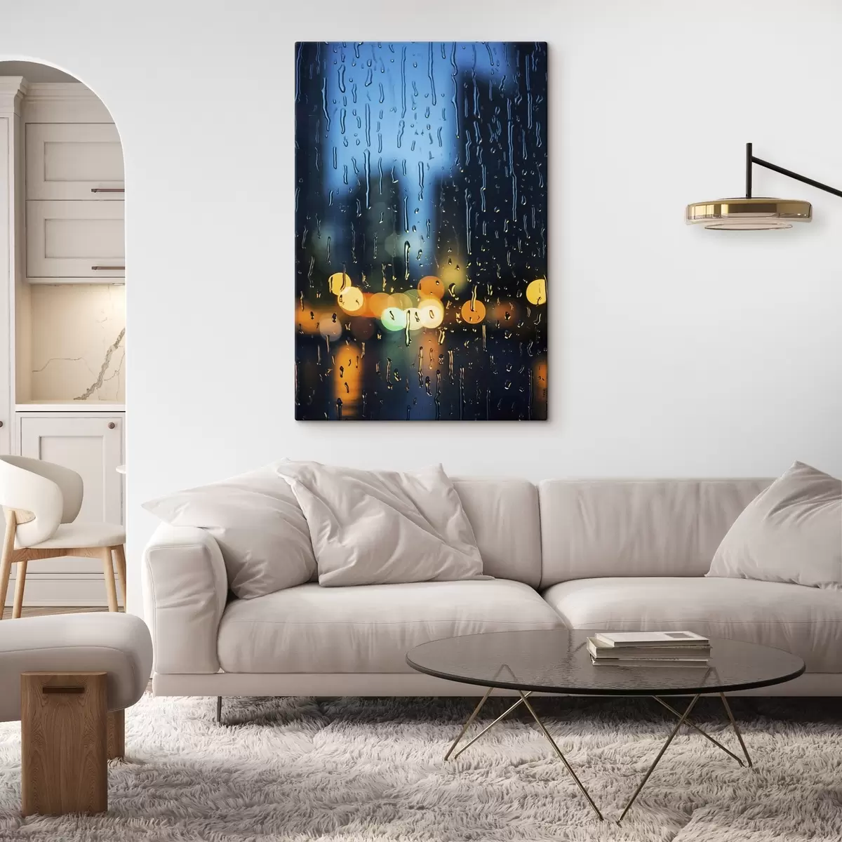 Paveikslas Kavos puodelis ant stalo per lietų Nr s45500