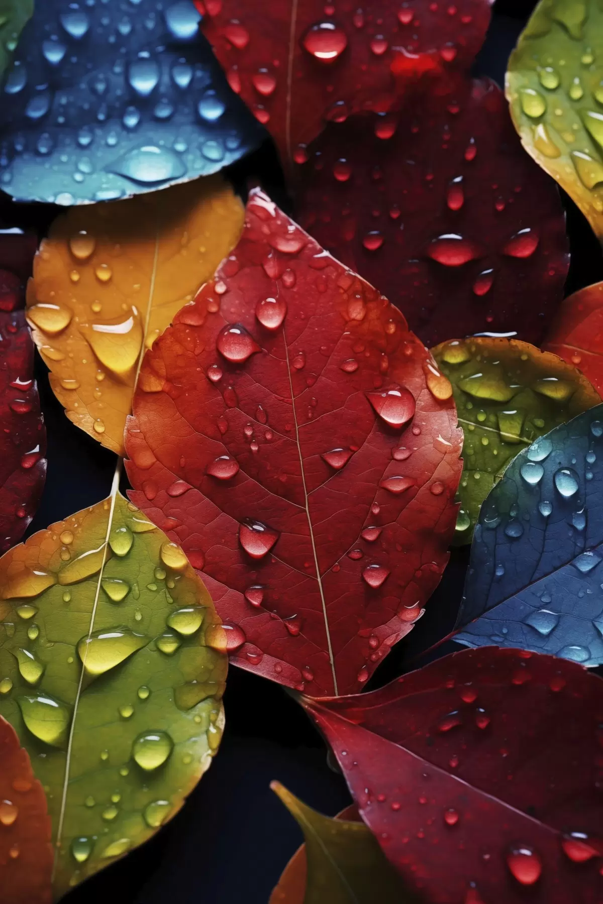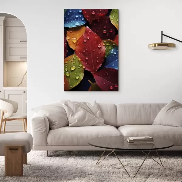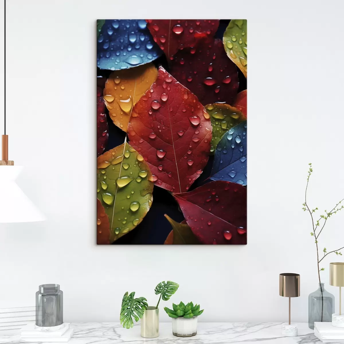 Paveikslas Spalvingi lapai su vandens lašeliais Nr s45516