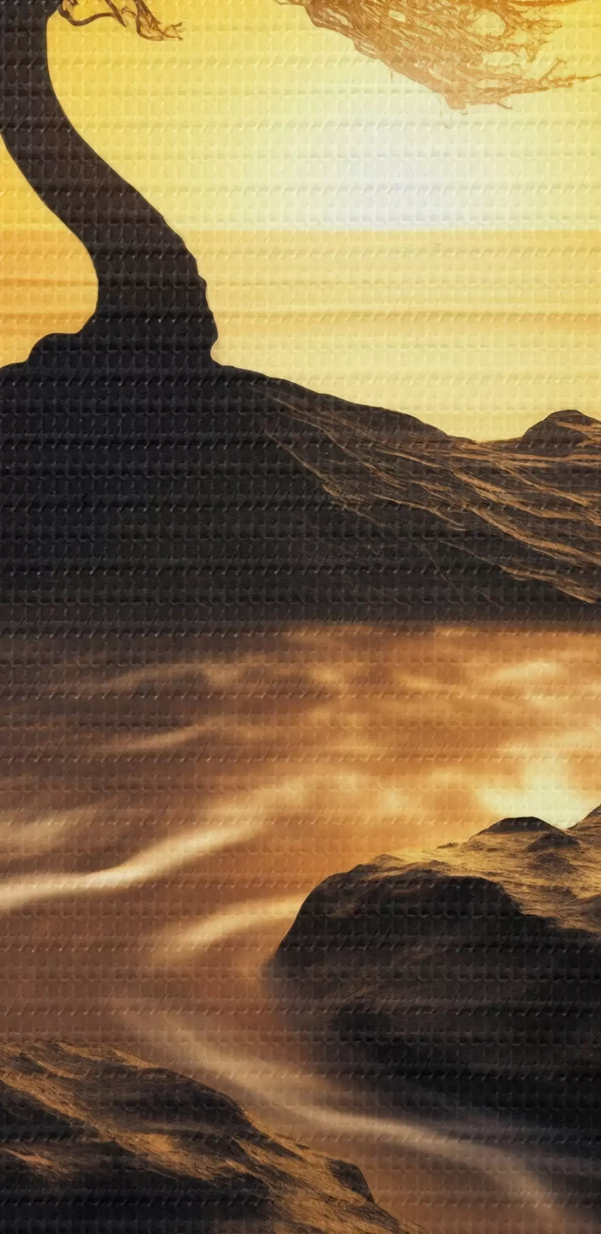 Paveikslas Vienišas medis ant uolos saulėlydžio metu Nr s45524