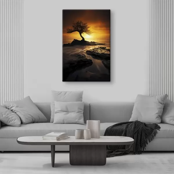 Paveikslas Vienišas medis ant uolos saulėlydžio metu Nr s45524
