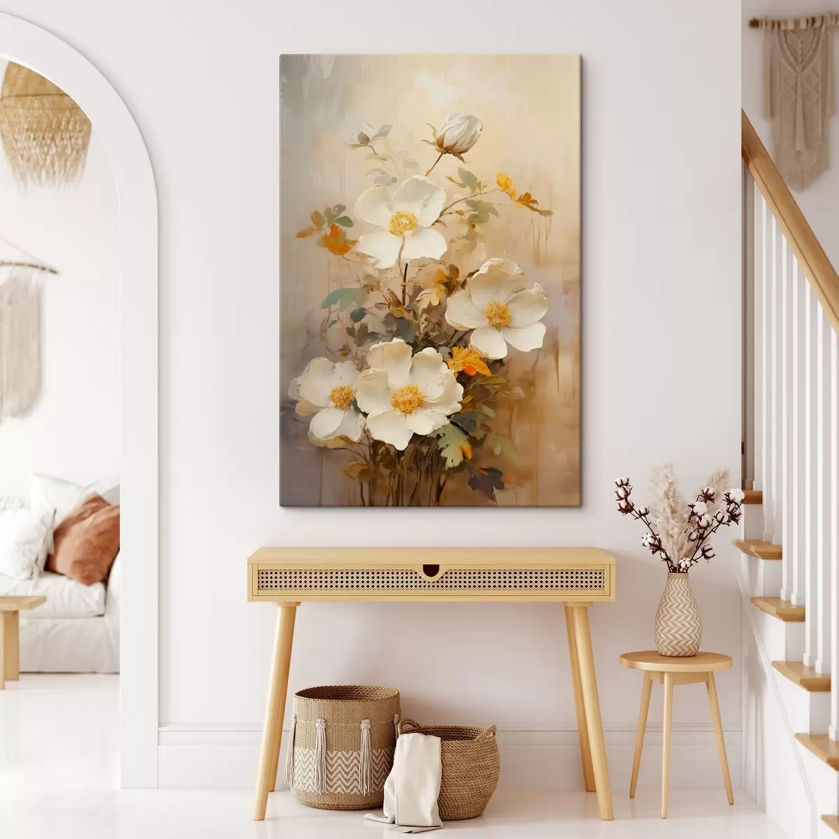 Paveikslas Baltos gėlės: tapybiška pastelinių tonų kompozicija Nr s45533