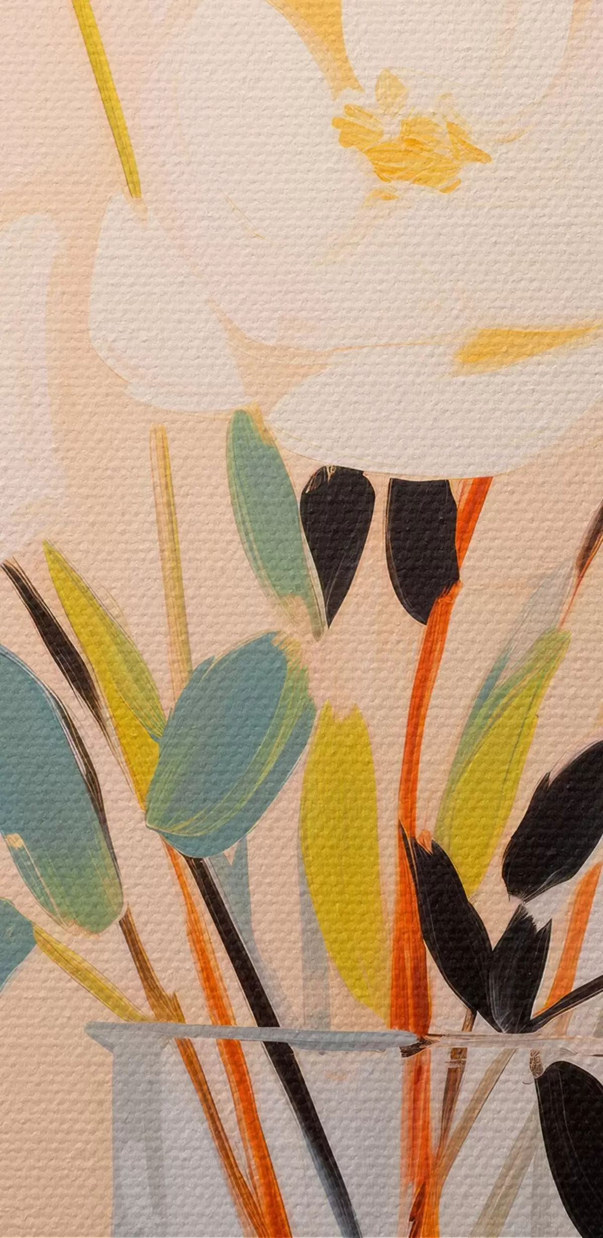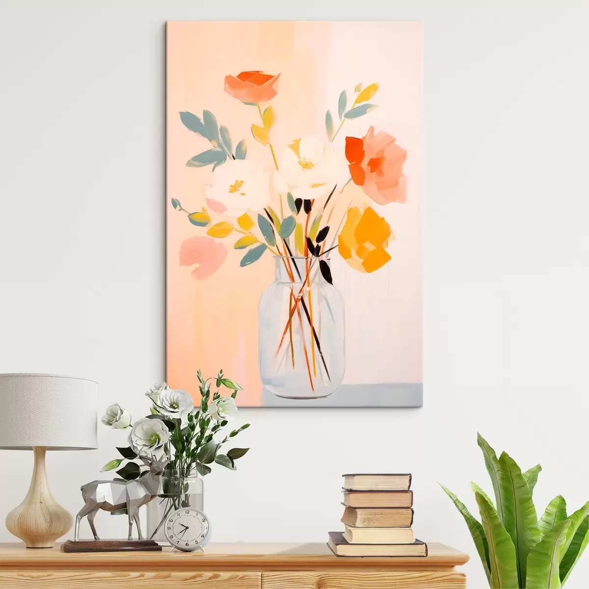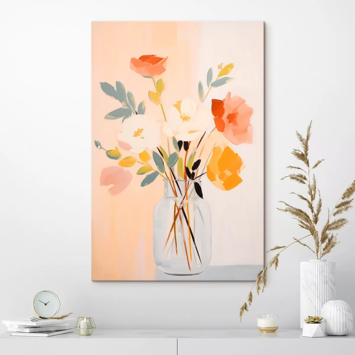 Paveikslas Dekoratyvinės gėlės: abstrakti puokštė vazoje šviesiame fone Nr s45539