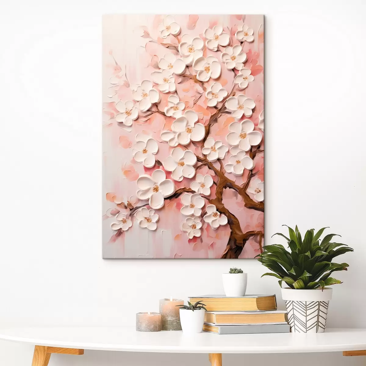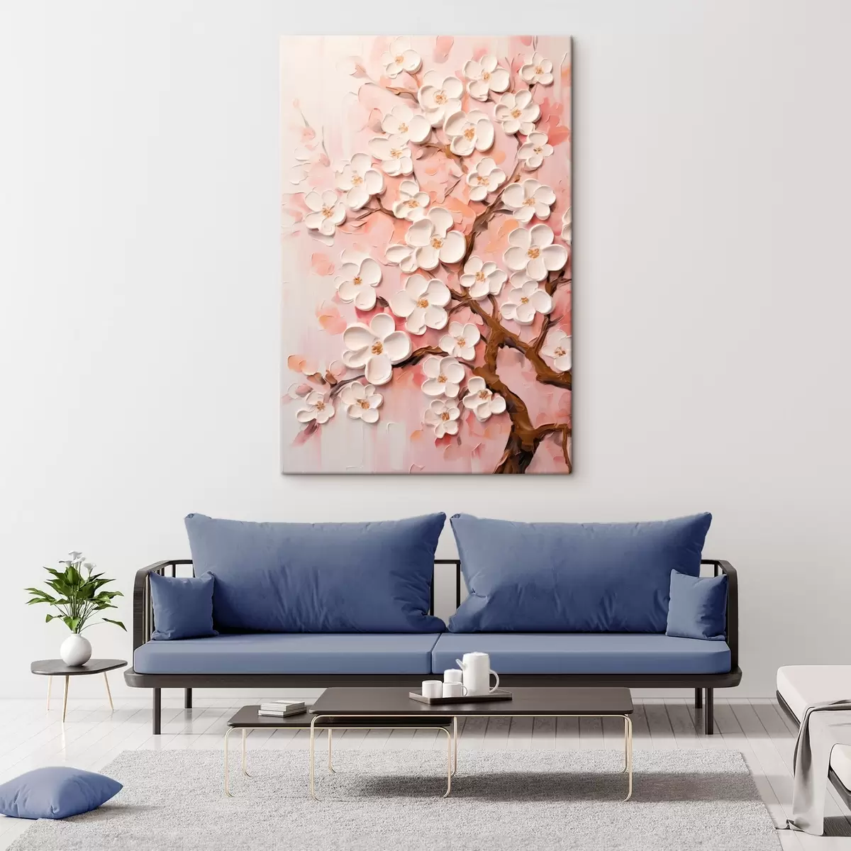 Paveikslas Žydinti šaka: reljefinė šviesiai rožinių tonų kompozicija Nr s45543