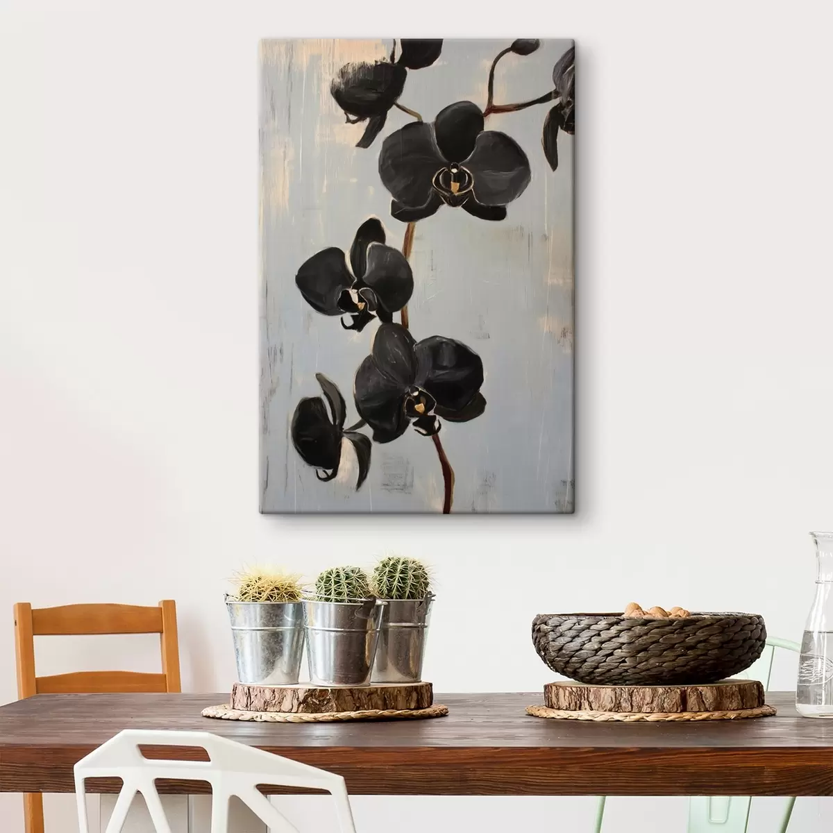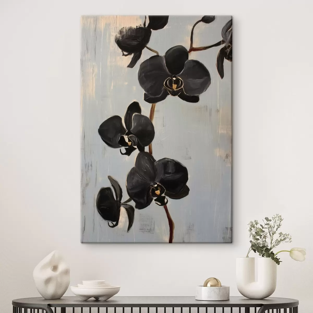 Paveikslas Dekoratyvinės orchidėjos: juodos gėlės pilkame fone Nr s45547