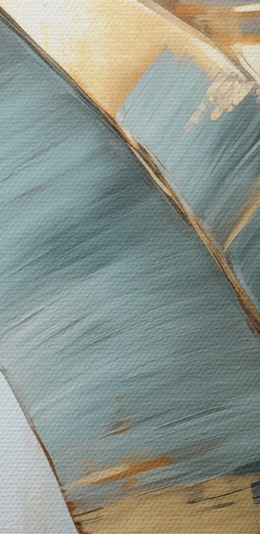 Paveikslas Prislopintų mėlynų, pilkų ir geltonų bananų lapų rinkinys su matomais teptuko potėpiais baltame abstrakčiame fone Nr s45551