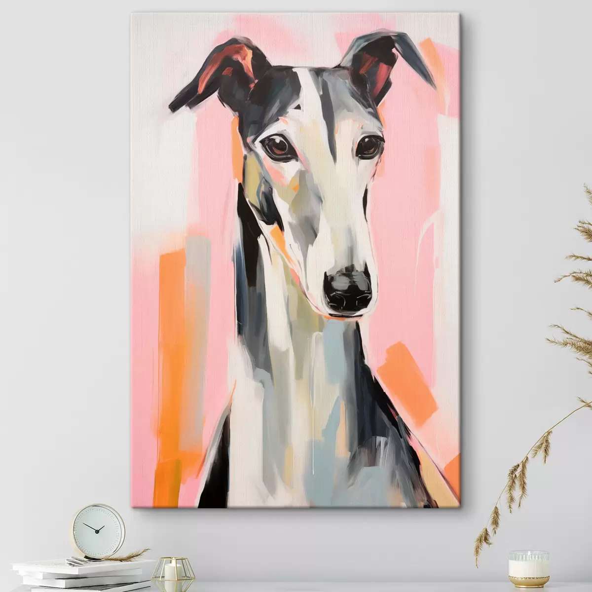 Paveikslas Kurtas rausvų, oranžinių ir baltų teptuko potėpių fone Nr s45566